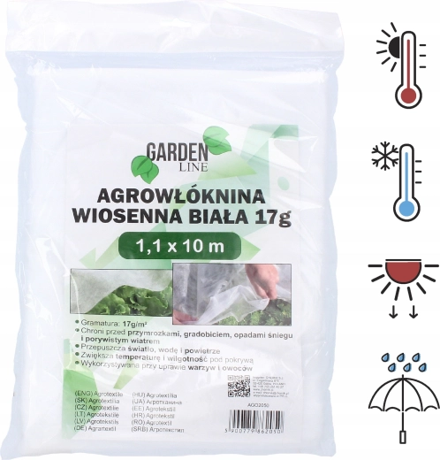 Ľahká jarná agrotextília 1,1 × 10 m chráni mladé rastliny pred jarnými prízemnými mrazíkmi, vetrom a škodcami, zároveň prepúšťa svetlo, vzduch aj vodu pre zdravý rast. Vďaka gramáži 17 g/m² a UV stabilizácii vytvára priaznivé mikroklíma a urýchľuje štart sezóny.