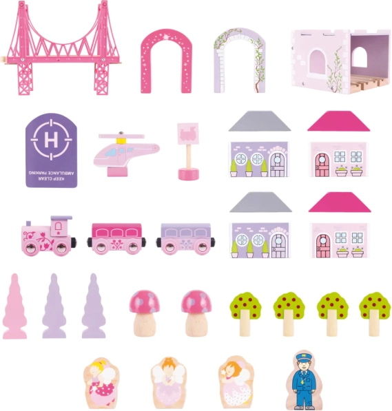 Táto vláčikodráha je ideálna pre deti, ktoré milujú rozprávkové a princeznovské témy. Súprava obsahuje 75 dielov, ktoré zahrňujú mosty, tunely, domčeky a stromy, čo umožňuje deťom vytvoriť si vlastný kúzelný svet.