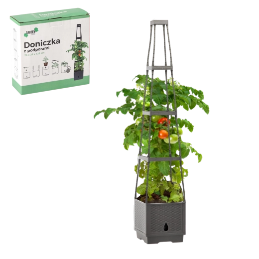 Praktický kvetináč s integrovanými oporami je ideálny pre popínavé rastliny. Poskytuje im stabilnú oporu, podporuje zdravý rast a šplhanie a zároveň tvorí dekoratívny prvok pre záhradu, terasu aj balkón.