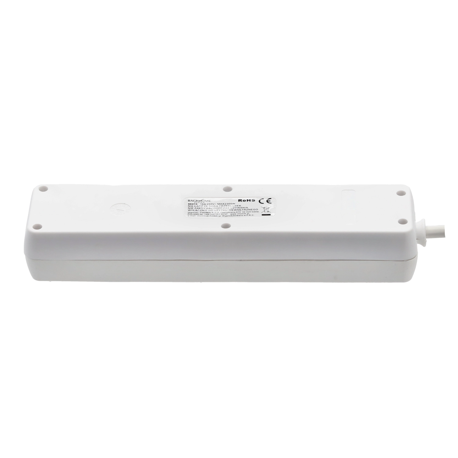 Bezpečné používanie podporuje detská poistka, kvalitné plastové telo a spoľahlivé elektrické parametre: 250 V / 16 A s odporúčaným zaťažením do 2300 W. Ideálna voľba do obývačky, domácej kancelárie aj dielne.