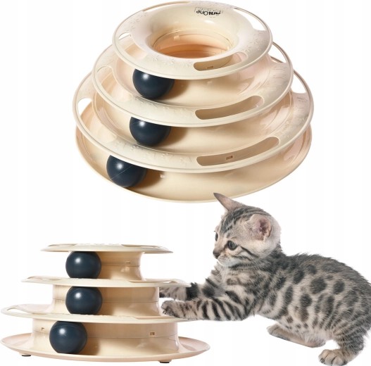 Interaktívna hračka pre mačky s trojposchodovou konštrukciou a ľahkými loptičkami podporuje prirodzené lovecké inštinkty, fyzickú aktivitu a duševnú stimuláciu. Stabilné prevedenie z odolného plastu a protišmykové nožičky zabezpečujú bezpečnú a dlhotrvajúcu zábavu pre mačky všetkých vekových kategórií.