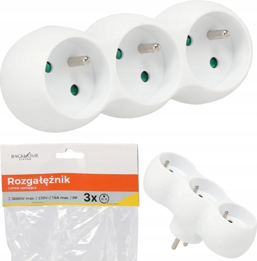 Praktický biely rozbočovač s tromi zásuvkami francúzskeho typu (Schuko) na každodenné použitie v domácnosti aj kancelárii. Ponúka 3 zásuvky 230 V, max. výkon 3680 W a bezpečnostné clony pre deti. Vďaka odolnému materiálu PP a elegantnému bielemu dizajnu sa hodí do každého interiéru.