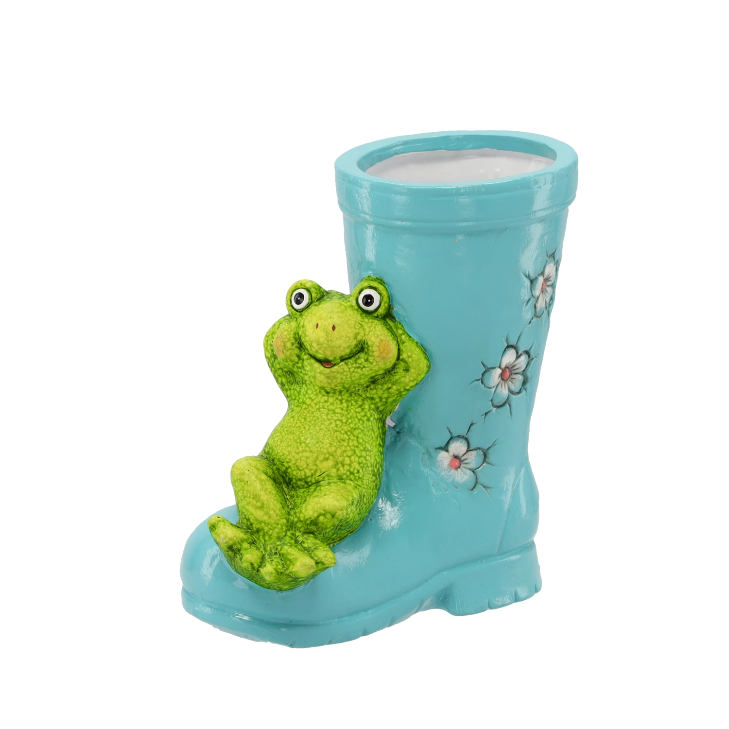 Tento dizajnový kvetináč v podobe čižmy so žabou ľahko oživí každý kút. Je ideálny na bylinky, sukulenty aj drobné kvety a vďaka kompaktným rozmerom ho umiestnite na parapet, schody, stolík na terase alebo zábradlie balkóna.