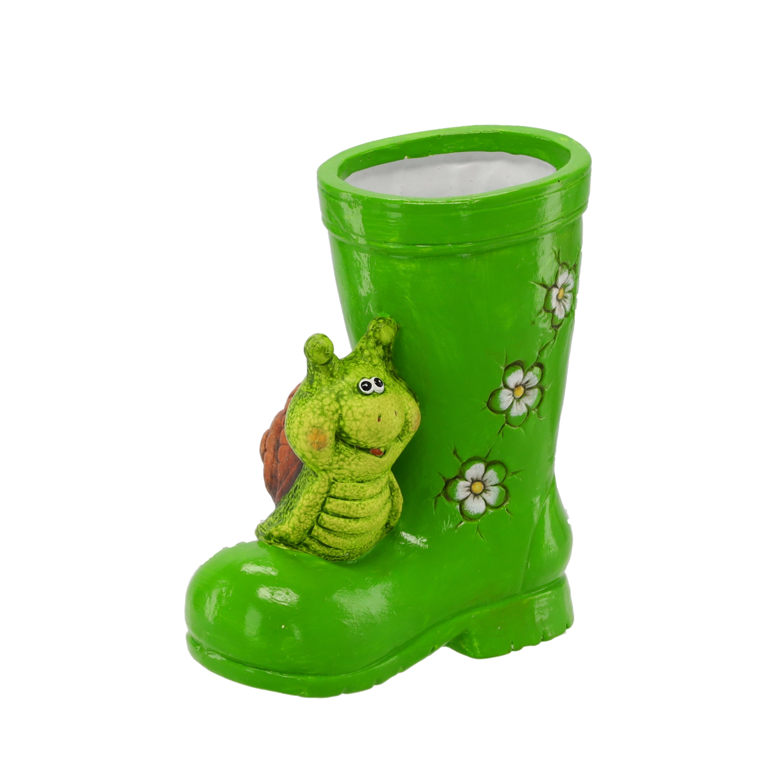 Čižma so slimákom je nielen pôsobivá dekorácia, ale aj chytrý spôsob, ako do exteriéru vniesť zeleň. Vďaka integrovanému priestoru na výsadbu ľahko vytvoríte originálne kompozície z byliniek či kvetín a ozvláštnite tak vstup, terasu alebo parapet.