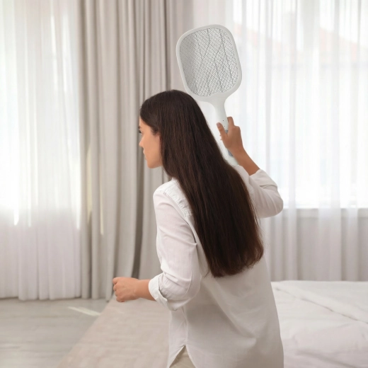 Praktická a bezpečná plácačka na hmyz 2v1 slúži ako ručný lapač aj stojaca lampa na hmyz. Vďaka 6 UV LED (360–400 nm) účinne priťahuje komáre a muchy, ktoré následne zlikviduje vysokonapäťová sieťka ~3000 V. Je ľahkou a odolnou voľbou do domu, na chatu aj terasu, s nabíjaním cez USB‑C, až 7 hodín prevádzky a bez použitia chémie.