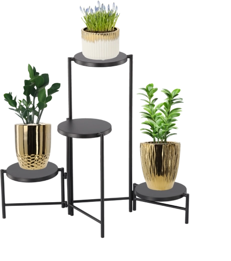 Elegantný štvorúrovňový stojan na kvety z odolného kovu ponúka dosť miesta pre viac kvetináčov aj v menších priestoroch. Vďaka minimalistickému dizajnu v čiernej farbe skvele zapadne do moderného, loftového aj klasického interiéru. Stabilná konštrukcia s práškovým nástrekom zaručuje dlhú životnosť a jednoduchú údržbu – stačí utrieť vlhkou handričkou.