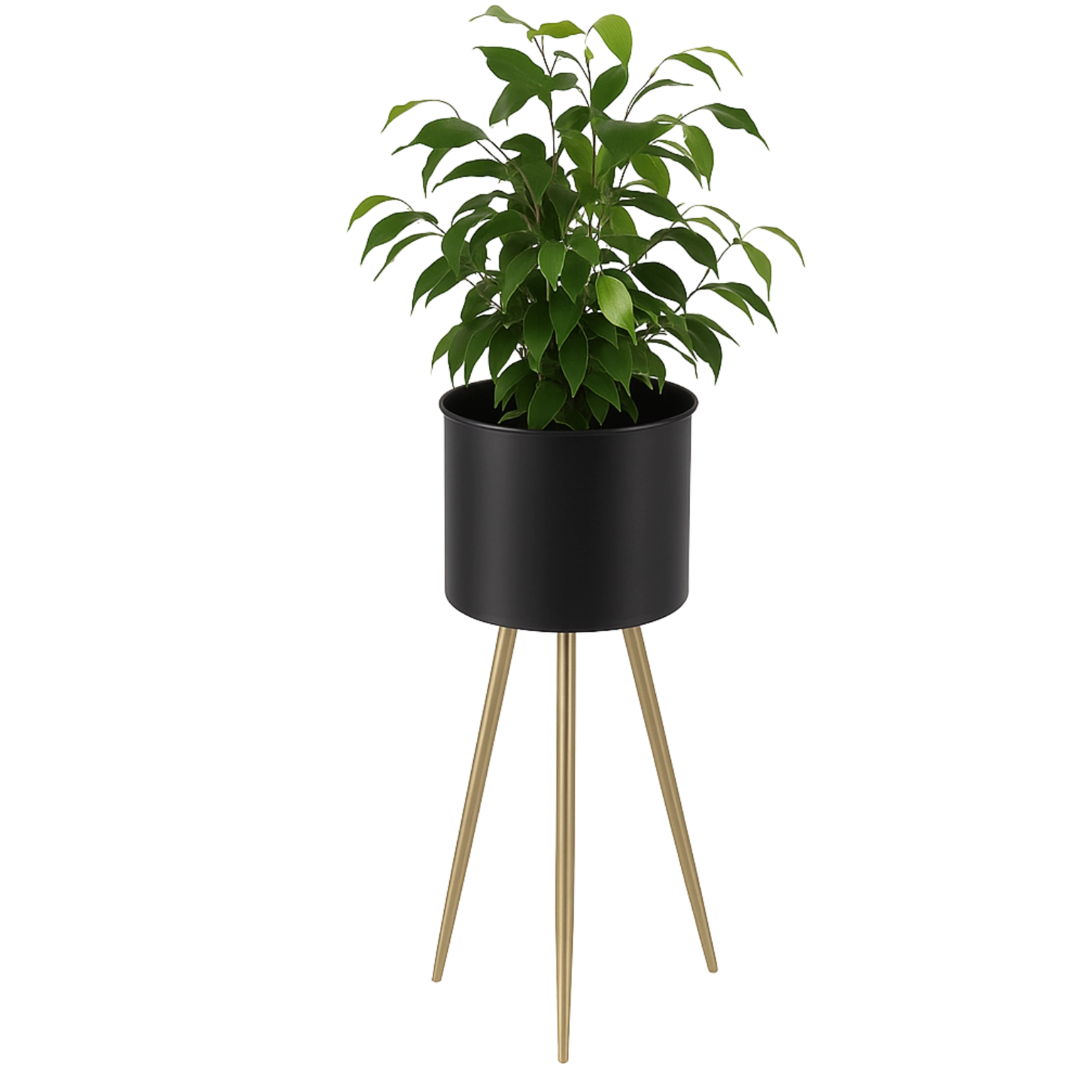 Doprajte svojim rastlinám priestor vyniknúť. Tento elegantný stojan na kvety kombinuje čierny matný povrch s lesklými zlatými nožičkami, čím vytvára atraktívny kontrast, ktorý oživí každý interiér. Minimalistický tvar sa ľahko zladí s moderným aj klasickým zariadením a podčiarkne prirodzenú krásu vašich rastlín.