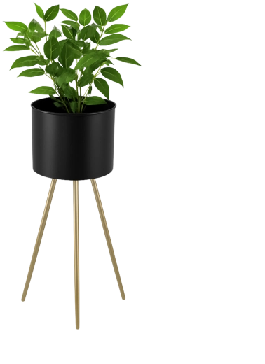 Štýlový stojan na kvety s rozmermi 18 × 18 × 50 cm v čiernej farbe so zlatými nožičkami je ideálny pre moderné interiéry. Ponúka stabilnú kovovú konštrukciu, elegantný minimalistický dizajn a ľahkú údržbu, takže skvele vynikne v obývačke, spálni, kancelárii aj na krytom balkóne.