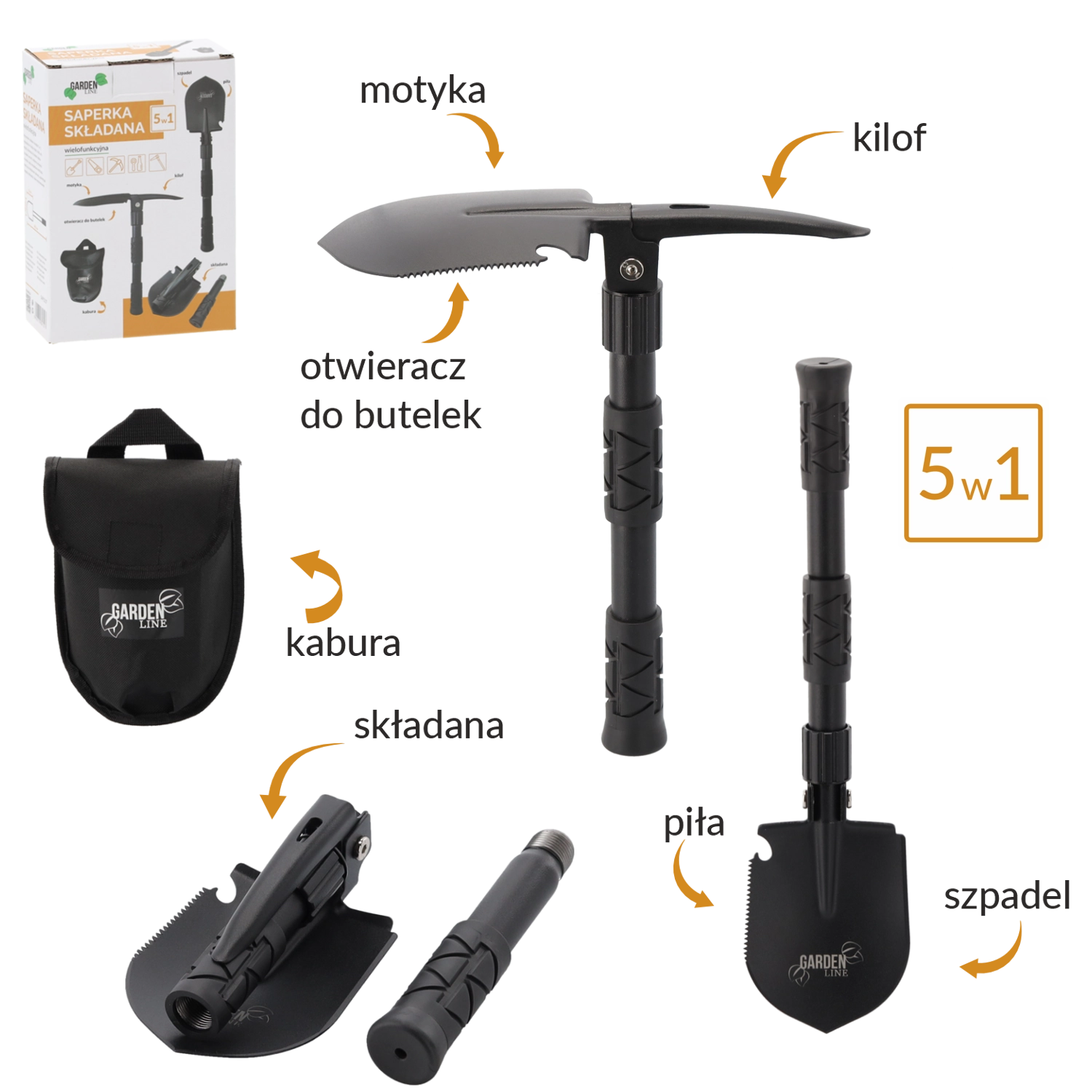 Lopatka, motyka, pílka, krompáč a otvárač – všetko v jednom. Prestavané behom chvíľky podľa potreby, či už kopete, kypríte pôdu alebo režiete vetvy.