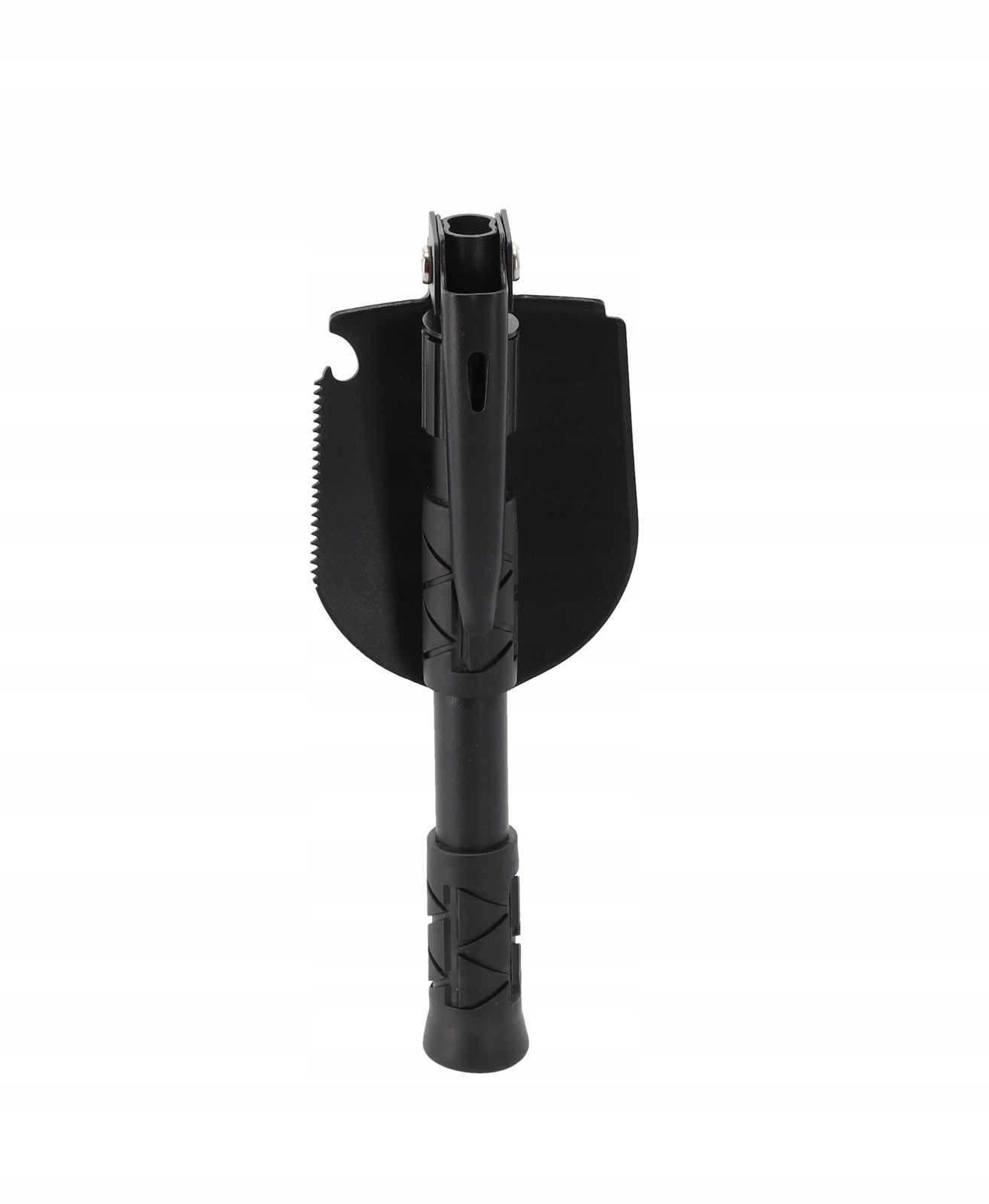 Vďaka skladacej konštrukcii sa lopatka zmenší na iba 16 cm, takže sa bez problémov zmestí do batohu či priehradky v aute. Uzamykací mechanizmus kĺbu drží nástroj pevne v zvolenej polohe a textúrované madlo poskytuje istý úchop. Súčasťou je aj odolné puzdro na bezpečné uloženie a rýchle pripnutie.
