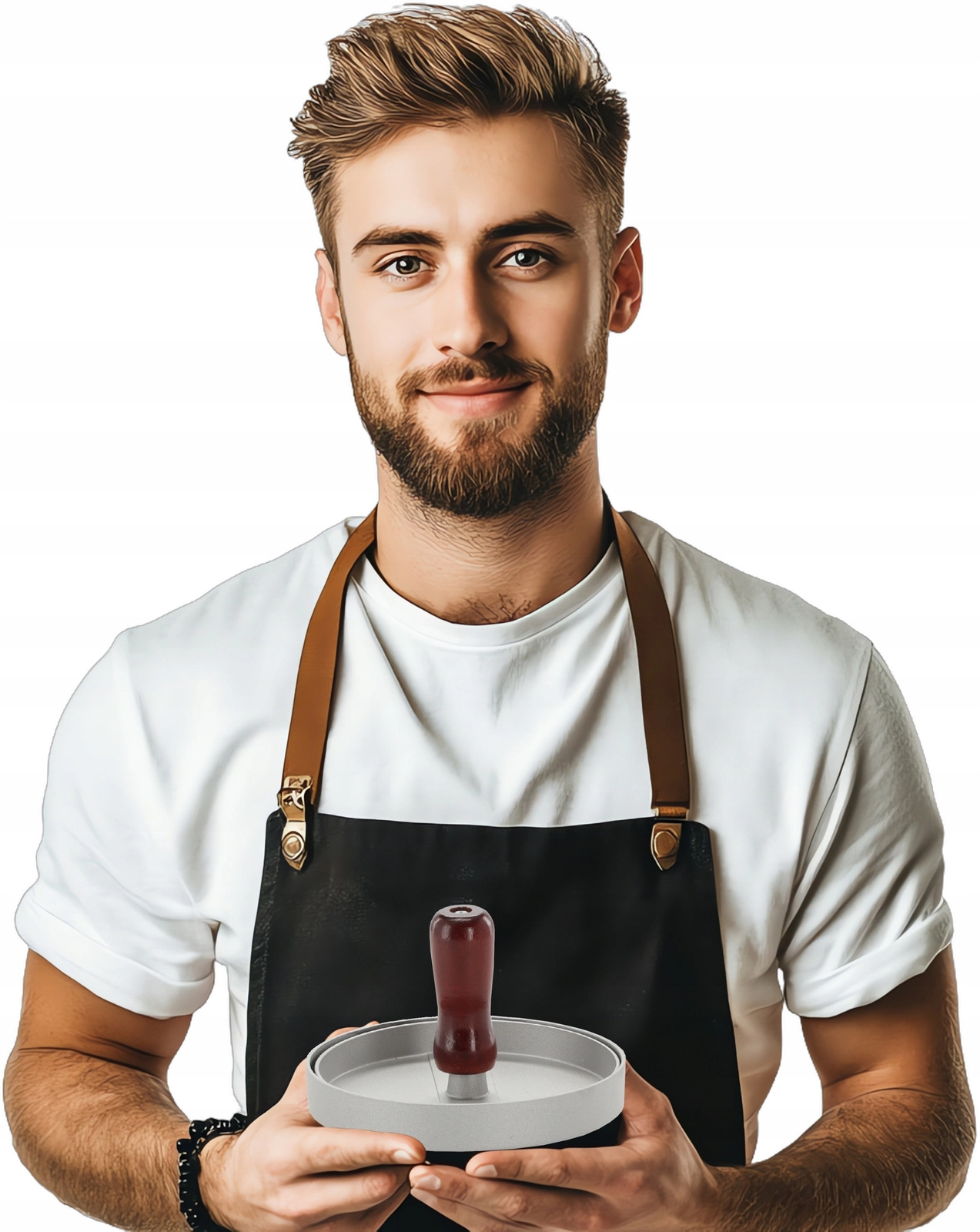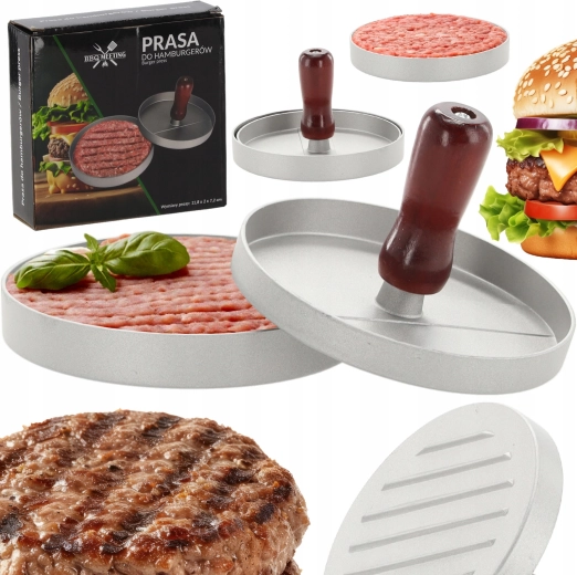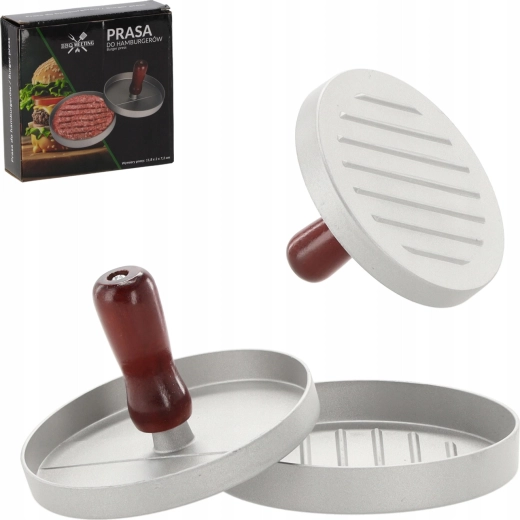 Tento praktický lis na burgre zaručuje jednotný tvar a hrúbku mäsových placiek, takže sa lepšie prepečú a na tanieri vyzerajú profesionálne. Odolné hliníkové telo v štýlovej sivej farbe a pohodlná drevená rukoväť zaistia istý úchop a dlhú životnosť.