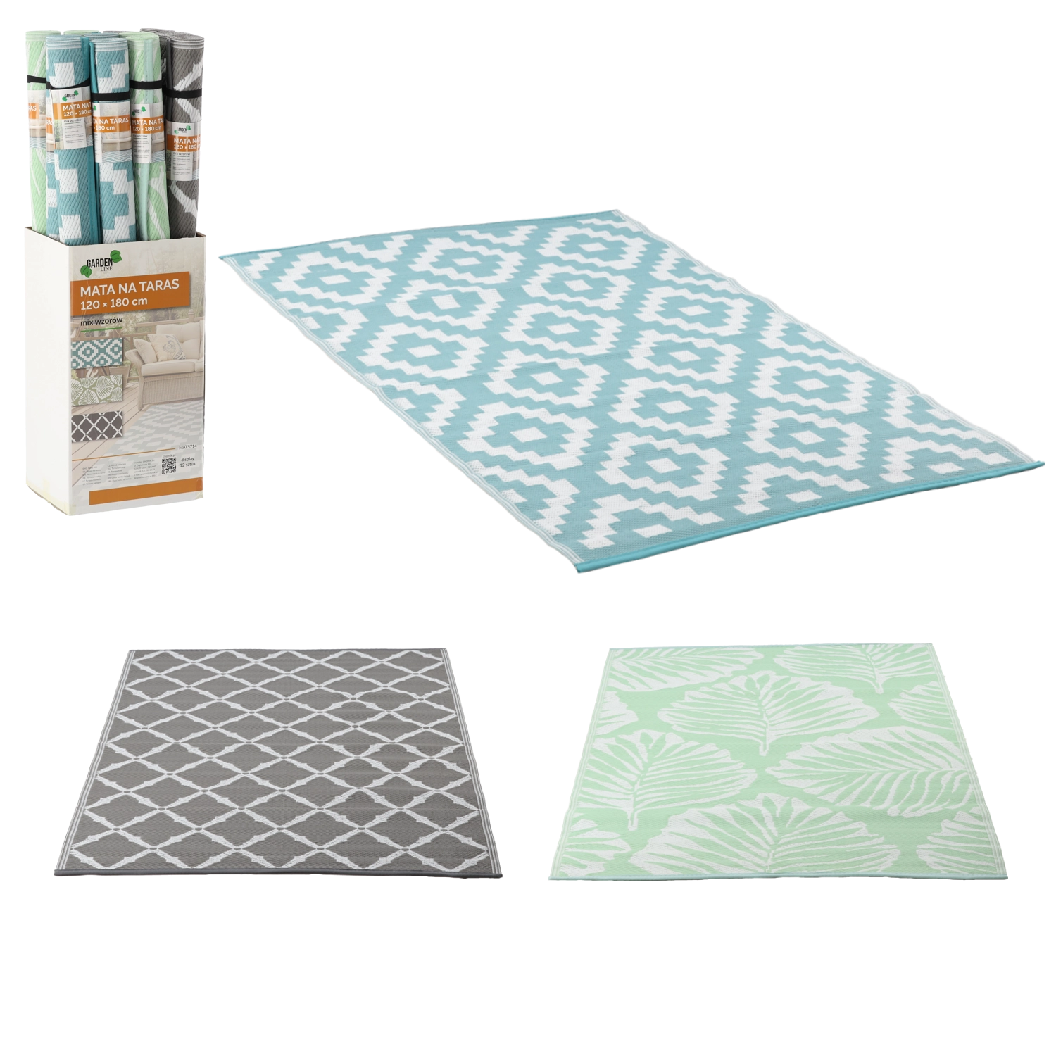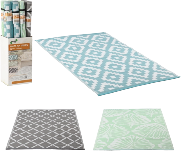 Rozmer 120 × 180 cm je ideálny pod záhradný nábytok, na definovanie relaxačnej zóny alebo ako základ pod detské hry. Mix vzorov v odtieňoch zelenej, sivej a tyrkysovej ľahko zladíte s rôznymi štýlmi vybavenia.
