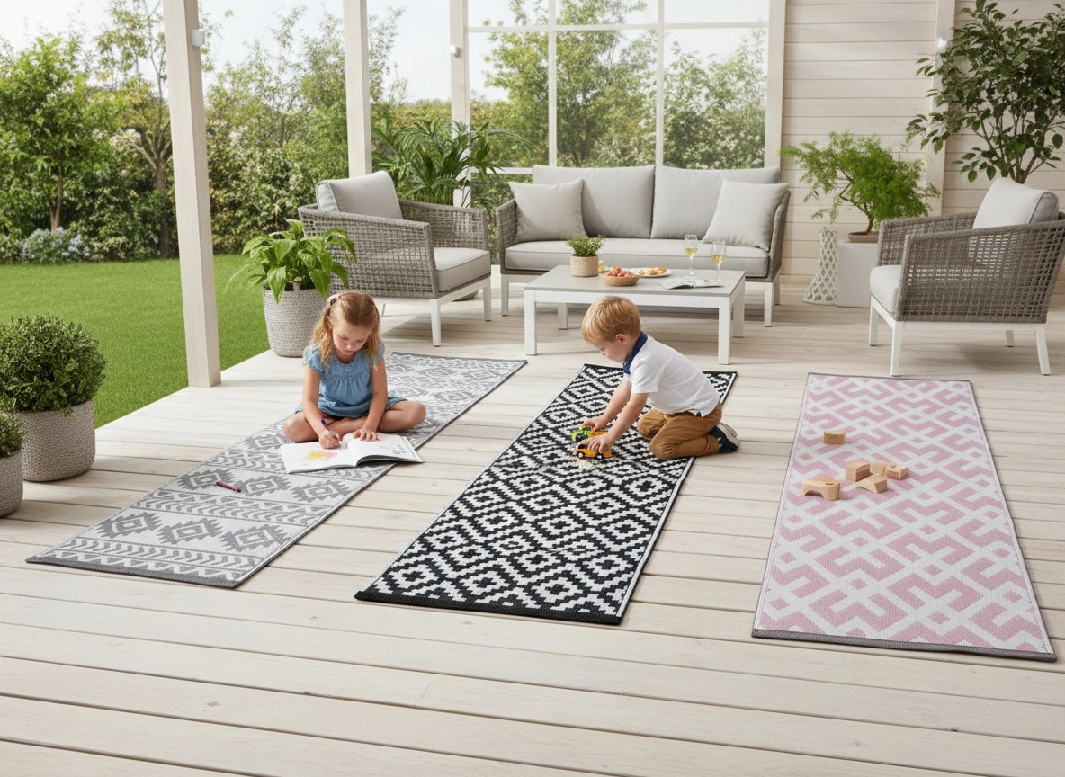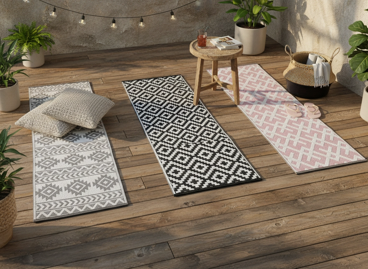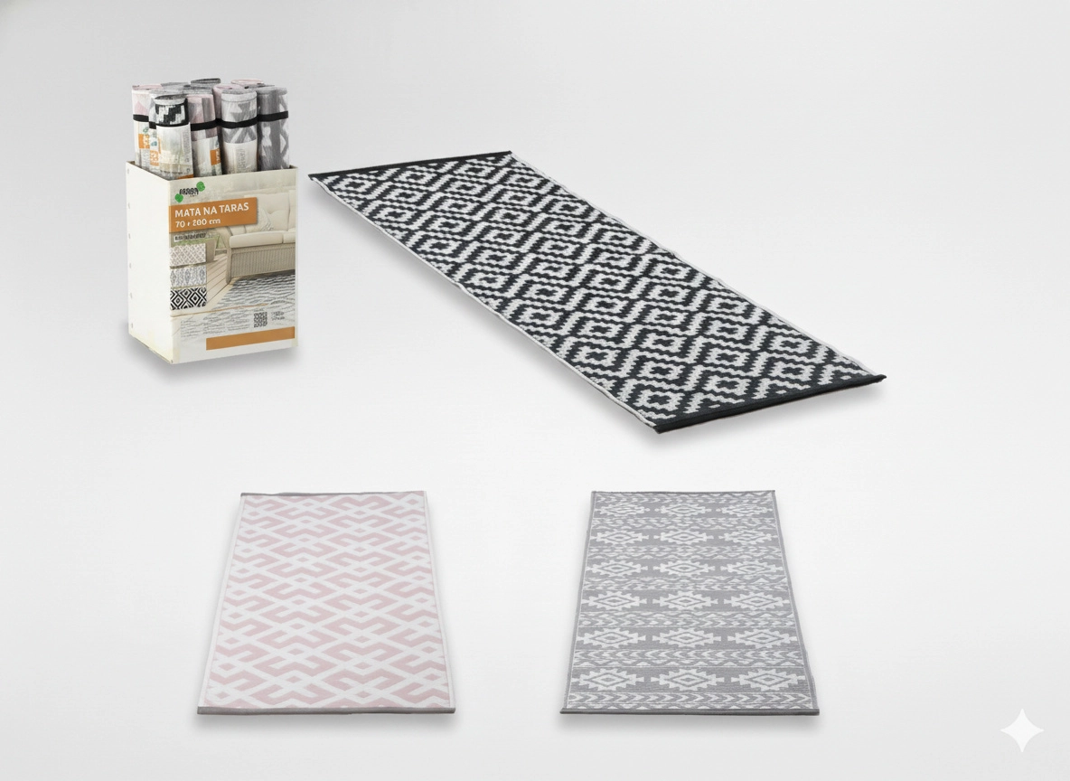Praktická a dekoratívna podložka/behúň na terasu vytvorí príjemnú zónu na relax aj stretávanie. Jednoduchá údržba a odolnosť voči vlhkosti a UV z nej robia ideálnu voľbu do exteriéru aj frekventovaných vstupných chodieb. Univerzálny rozmer 70 × 180 cm sa skvele hodí pred dvere, k záhradnému sedenieu aj do úzkych priechodov.