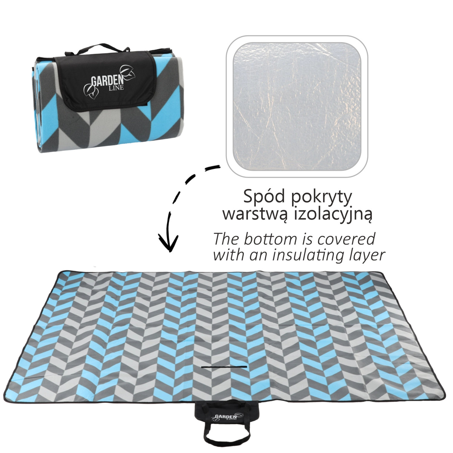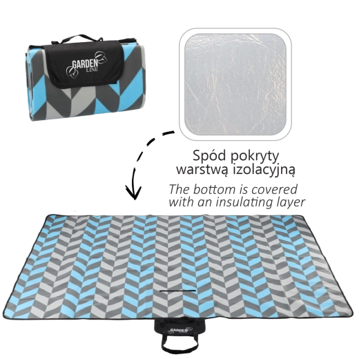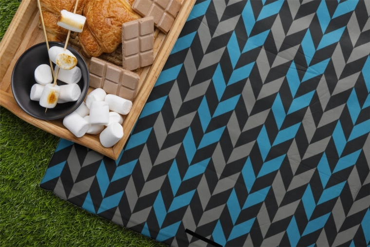 Deku jednoducho zložíte do kompaktného balíčka so zapínacou chlopňou, uchom a popruhom na prenášanie. Moderný vzor jolka v odtieňoch modrej a sivej sa hodí na každú príležitosť a dodá vášmu pikniku štýl.