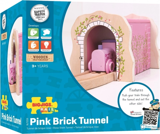 Ružový železničný tunel BIGJIGS RAIL je štýlový doplnok, ktorý dodá vašej drevenej vláčkodráhe farby a nové herné možnosti. Vďaka pevnej konštrukcii a hladkým hranám je bezpečný pre malé ruky a pripravený na každodenné hranie.