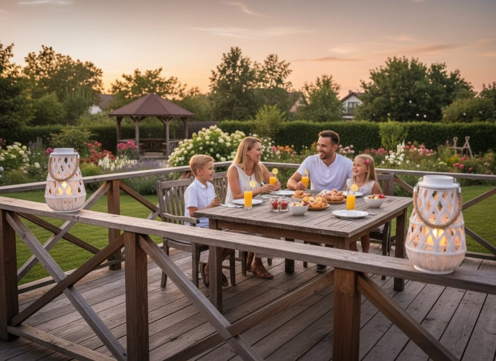 Odolné prevedenie a praktické ucho umožnia ľahké prenášanie a použitie na balkóne či terase pre útulné večerné posedenie.