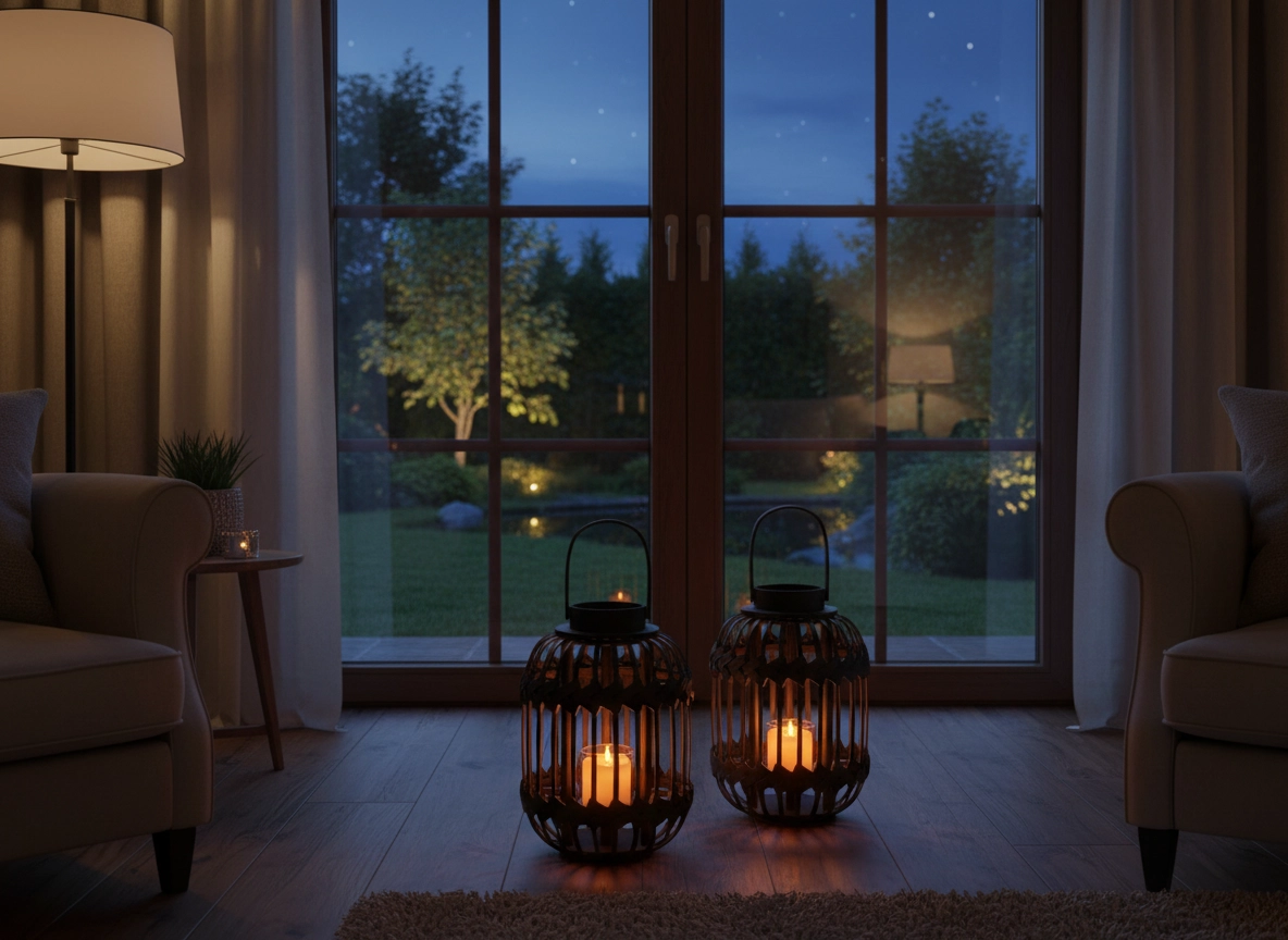 Štýlový lampášový svietnik v čiernom prevedení kombinuje kovovú konštrukciu s čírym sklom pre efektný rozptyl svetla a bezpečné umiestnenie sviečky. Otvorené lamely prepúšťajú teplý svit a vytvárajú príjemné tiene na večerný relax doma aj vonku.