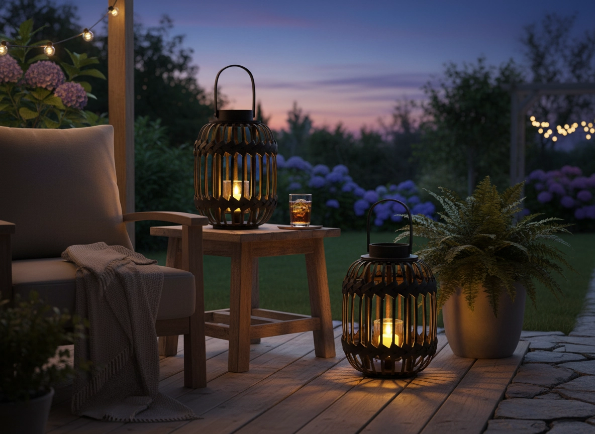 Pevné horné ucho umožňuje pohodlné prenášanie či zavesenie. Ideálny na večerné posedenie vonku.