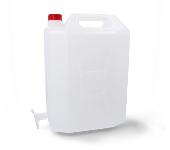 Praktický plastový kanister s objemom 20 litrov s integrovaným kohútikom na presné dávkovanie a pohodlné vypúšťanie tekutín. Ideálny na skladovanie a prepravu vody či iných kvapalín na cestách, v dielni aj v domácnosti.