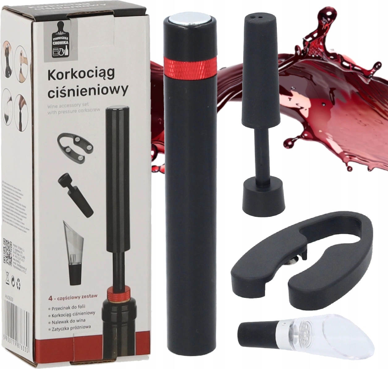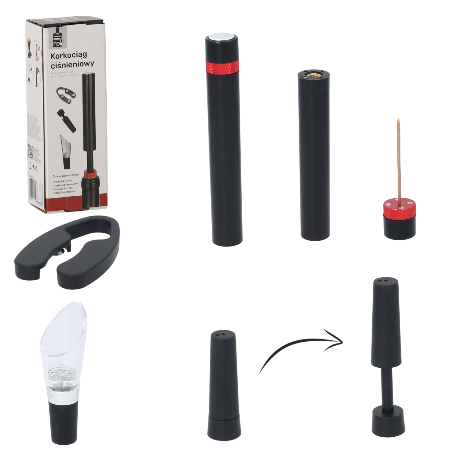 Súprava 4 vinárskych doplnkov s tlakovým vývrtkou