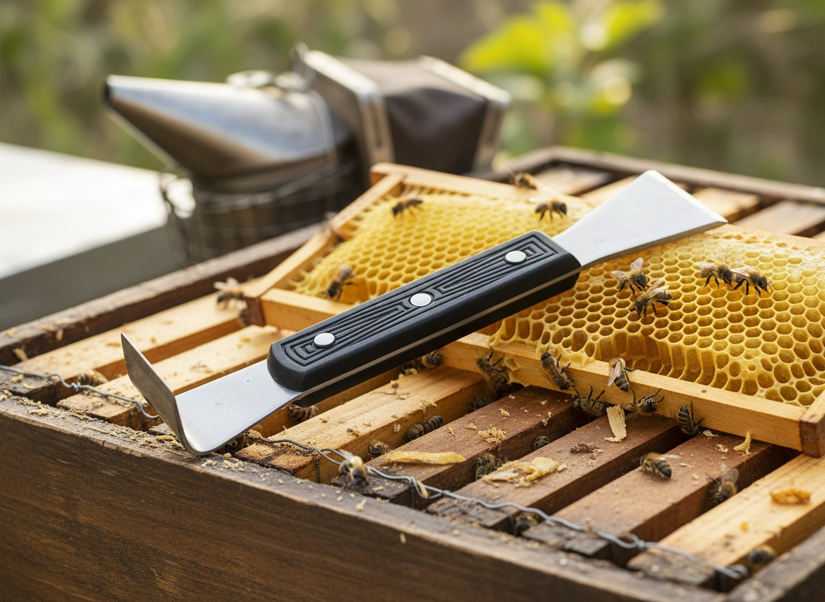 háčik na vypáčenie rámikov, škrabka na vosk a propolis