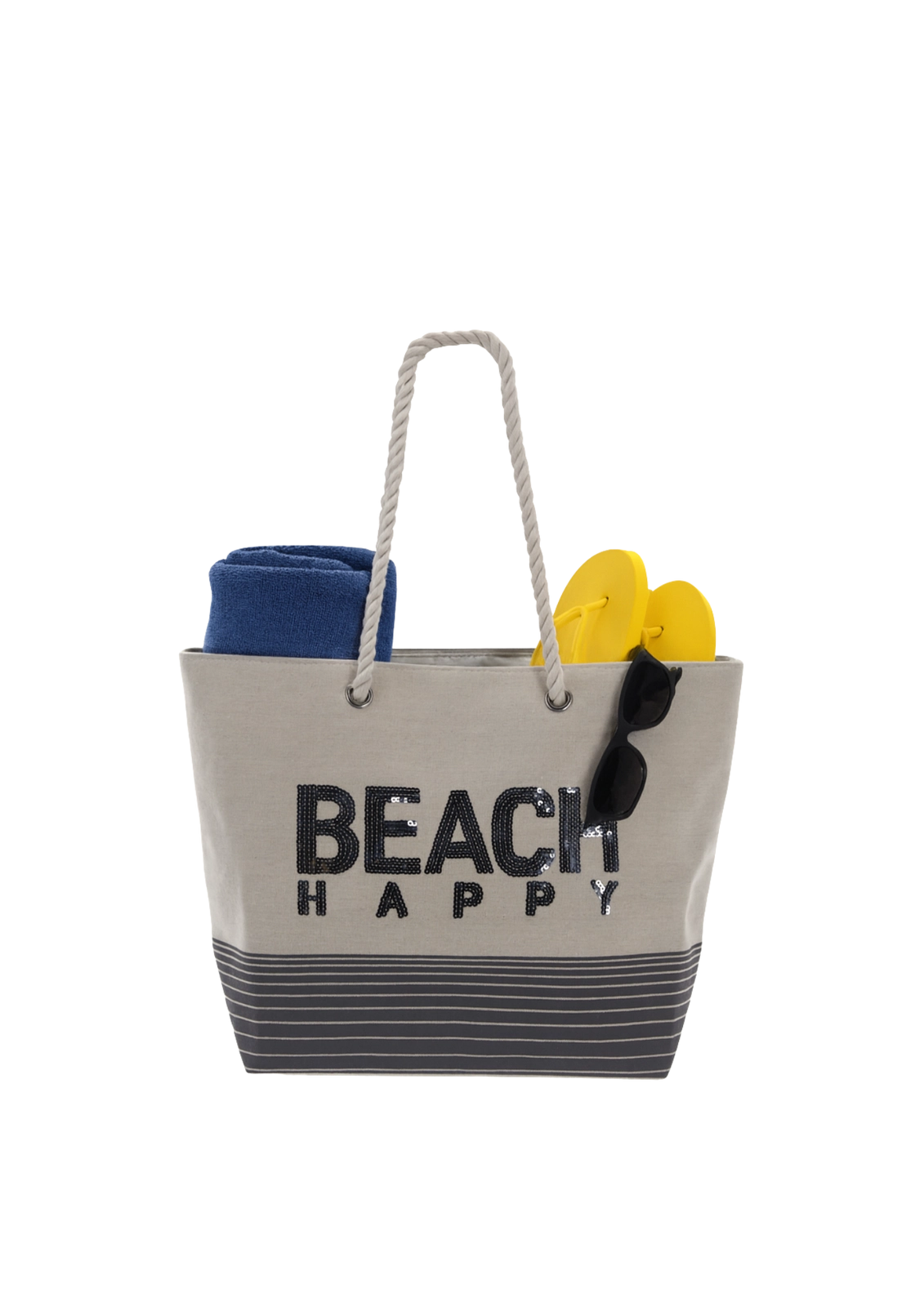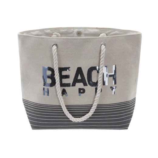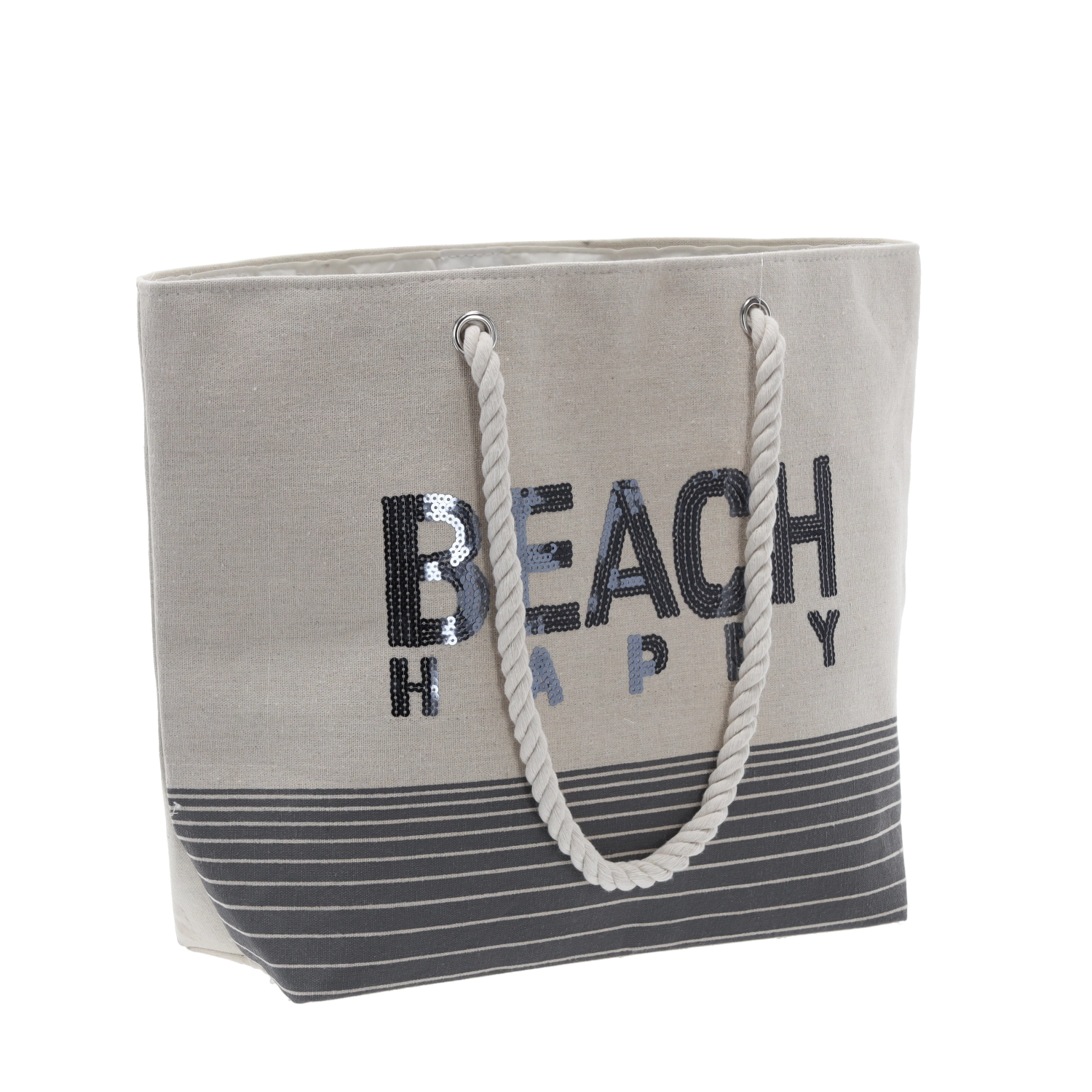 Štýlová a praktická plážová taška Beach Happy s rozmermi 50 × 35 cm ponúka dostatok miesta na uterák, opaľovací krém aj ďalšie nevyhnutnosti. Vďaka ľahkej konštrukcii, mäkkým rukovätiam a vnútornej vrecku na zips je ideálna na letné výlety k moru, k jazeru aj do mesta.