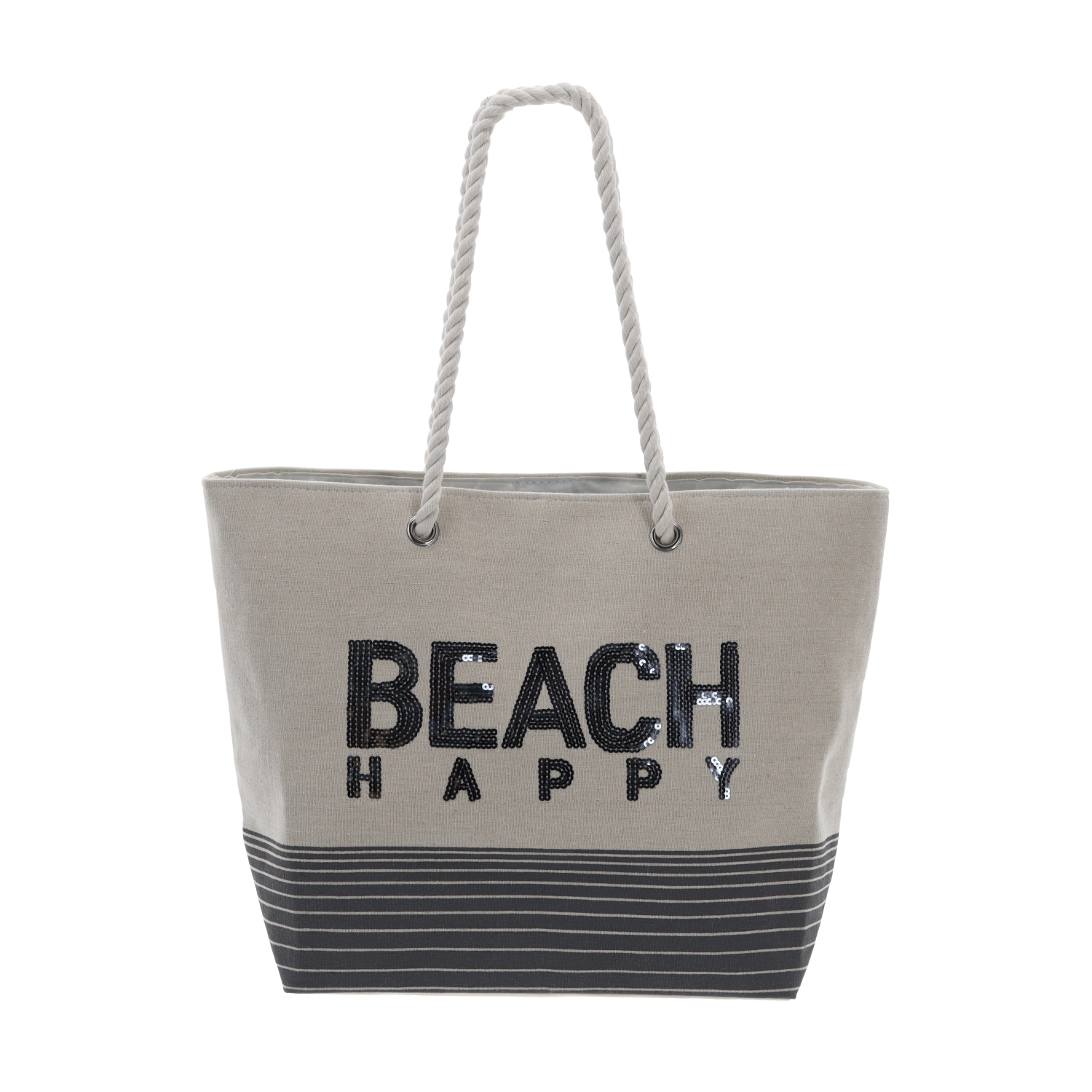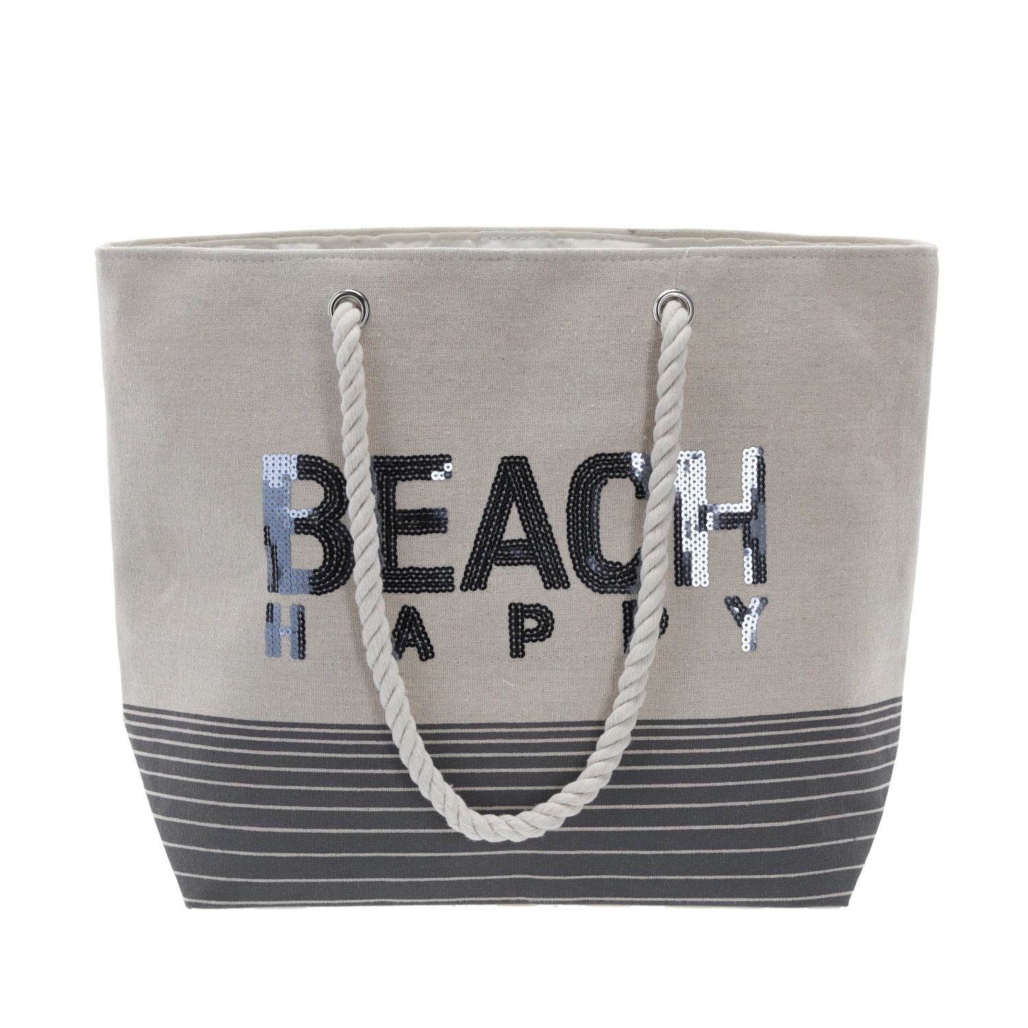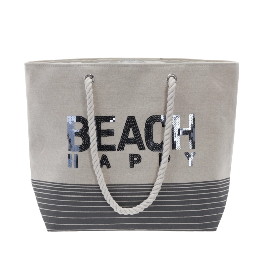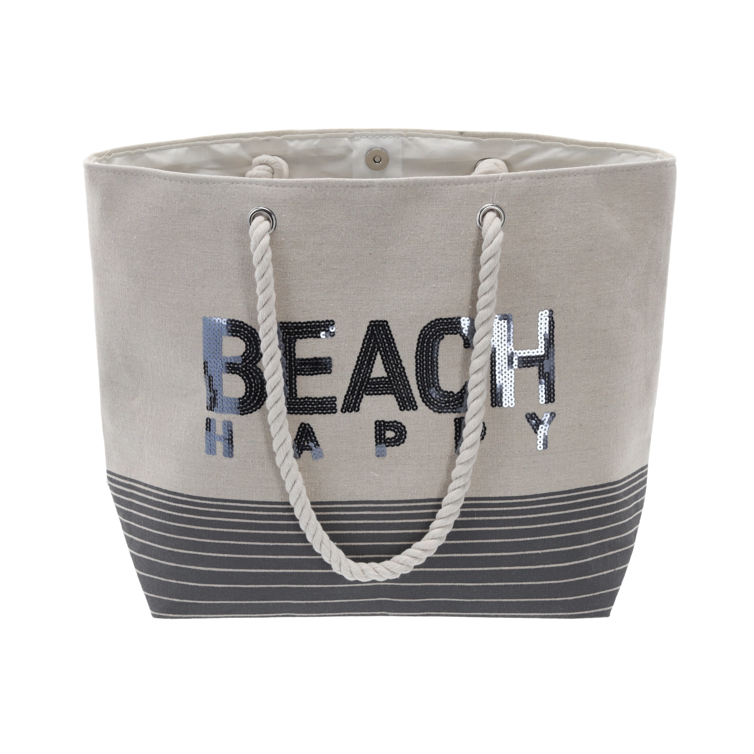 Štýlová a praktická plážová taška Beach Happy s rozmermi 50 × 35 cm ponúka dostatok miesta na uterák, opaľovací krém aj ďalšie nevyhnutnosti. Vďaka ľahkej konštrukcii, mäkkým rukovätiam a vnútornej vrecku na zips je ideálna na letné výlety k moru, k jazeru aj do mesta.