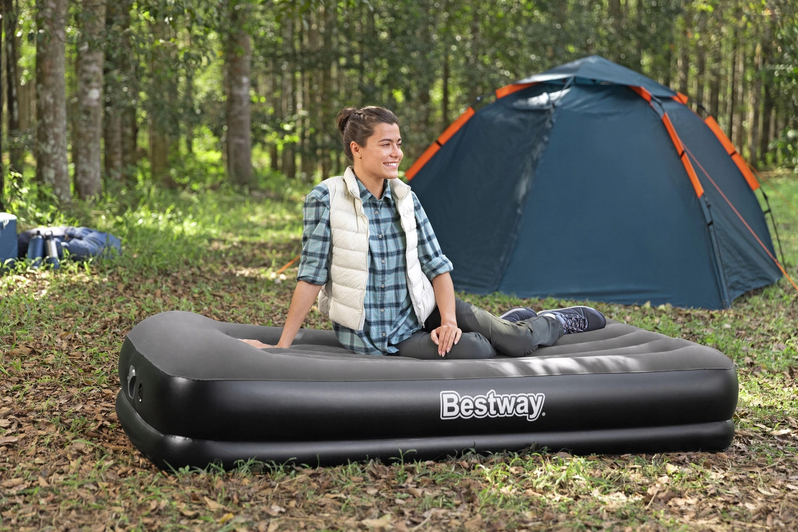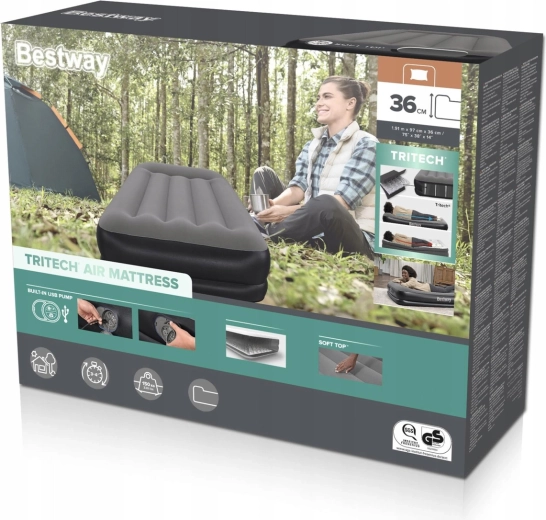 Nafukovacia posteľ BESTWAY TRITECH kombinuje stabilitu a komfort. Trojvrstvové jadro Tritech s polyesterovou mriežkou spevnenou PVC zaistí dlhodobú tvarovú stálosť, nižší únik vzduchu cez noc a príjemne pevnú oporu tela. Zvýšený profil 36 cm uľahčuje vstávanie a zároveň lepšie izoluje od chladu podlahy.