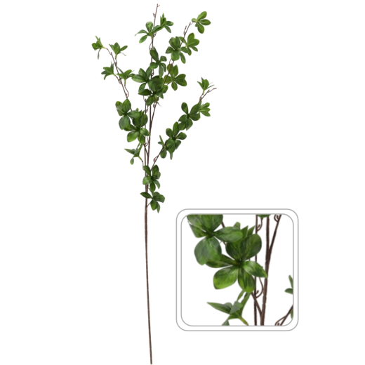 Táto umelá zelená vetvička verne napodobňuje prírodnú rastlinu a dodá vášmu domovu, kancelárii či komerčnému priestoru svieži vzhľad bez nutnosti starostlivosti. Vďaka realistickým listom a kvalitnému spracovaniu sa skvele hodí do váz, mís aj dekoratívnych aranžmánov.