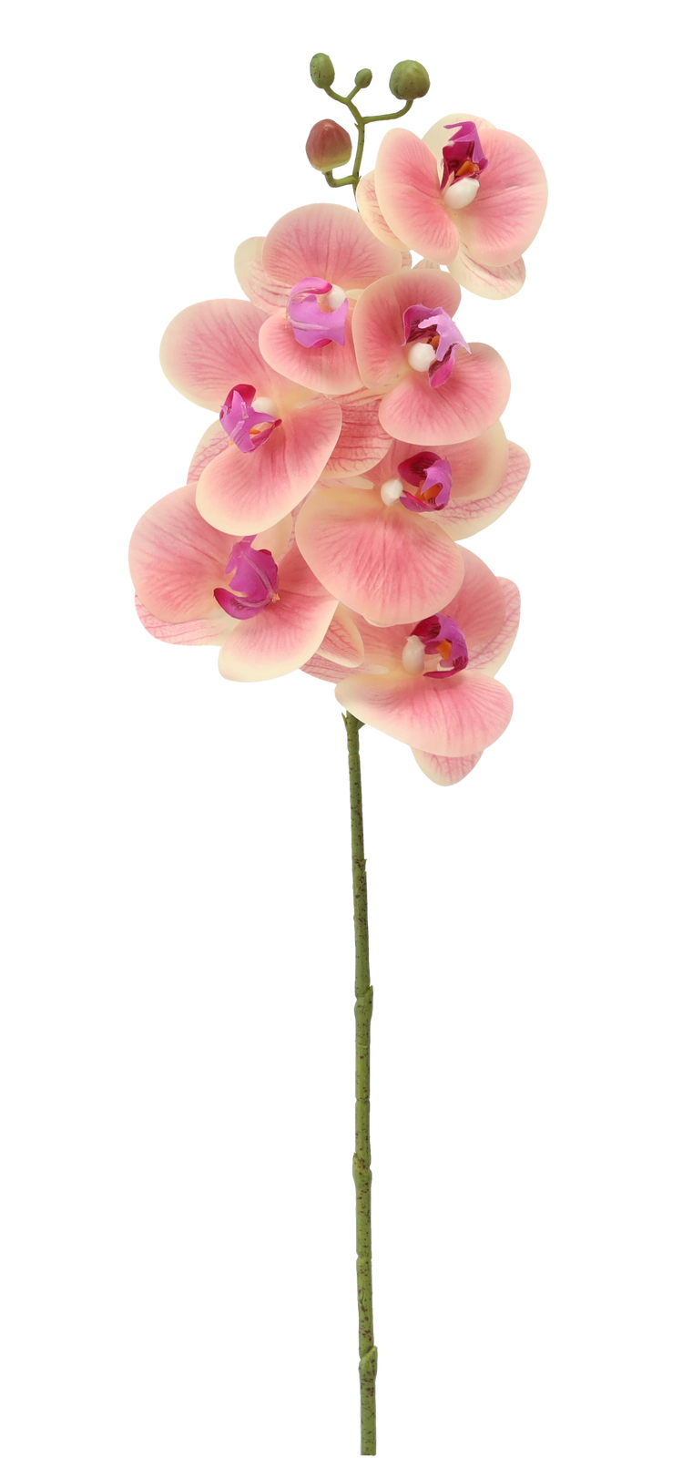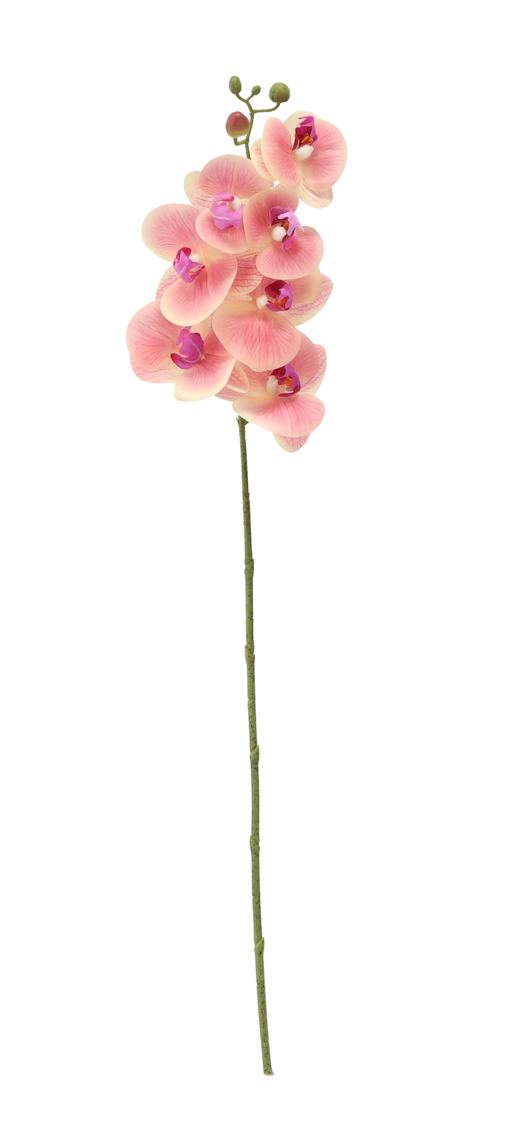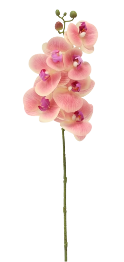 Dodejte interiéru nádych elegancie s realistickou dekoráciou – umelou vetvou orchidey s dĺžkou 74 cm. Jemné ružové kvety s prirodzeným tieňovaním, detailne spracované púčiky a ohybný stonok sa ľahko aranžujú do váz a kytíc. Bez údržby – žiadne zalievanie, vždy svieži vzhľad po celý rok.