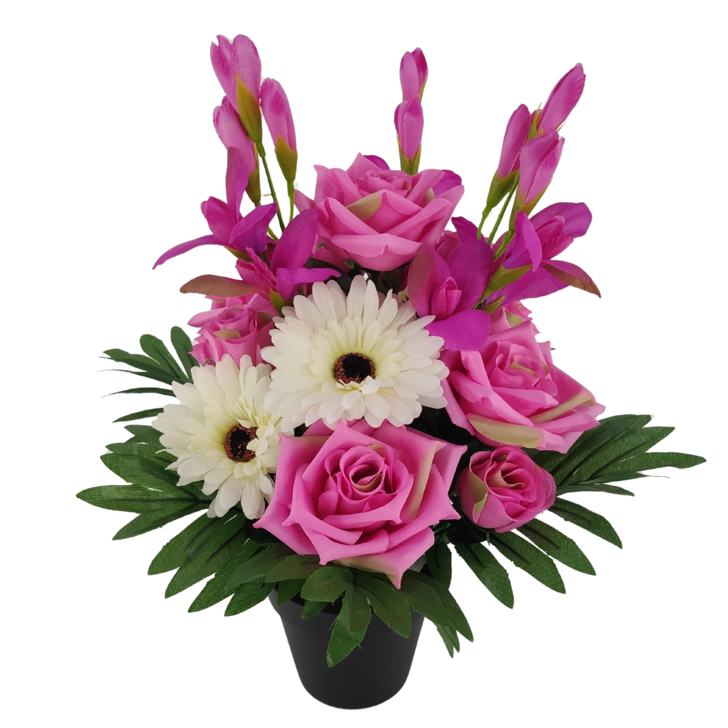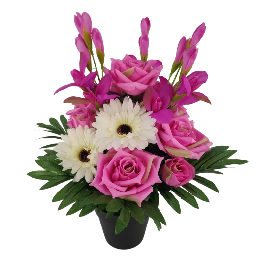 Táto pripravená kvetinová kompozícia očarí realistickým vzhľadom, sýtymi farbami a starostlivým usporiadaním kvetov. Vďaka kompaktnej veľkosti sa skvele hodí do obývačky, kancelárie, prevádzky aj ako dôstojná dekorácia miesta spomienky.