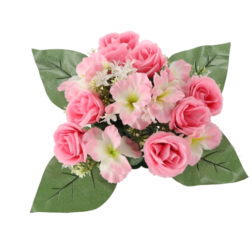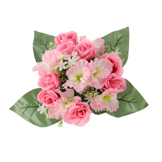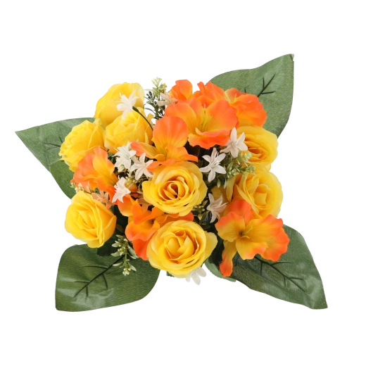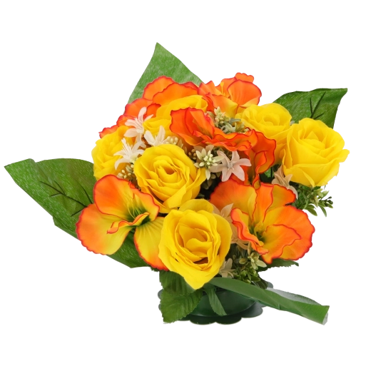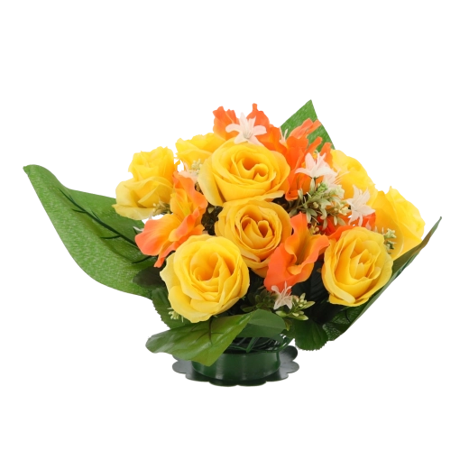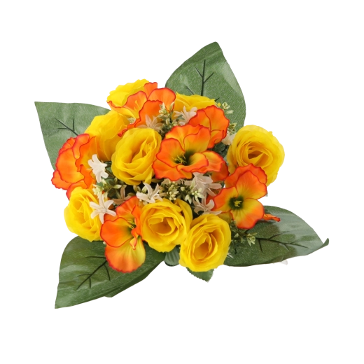 Vneste do domova či kancelárie svieži nádych kvetov bez starostí. Umelá kytica s ružami a ibištekom vyniká verným vzhľadom okvetných lístkov a listov, stabilným tvarom a sýtymi farbami, ktoré nevyblednú. Kompaktná veľkosť sa perfektne hodí na stôl, komodu, recepciu aj miesto spomienky.