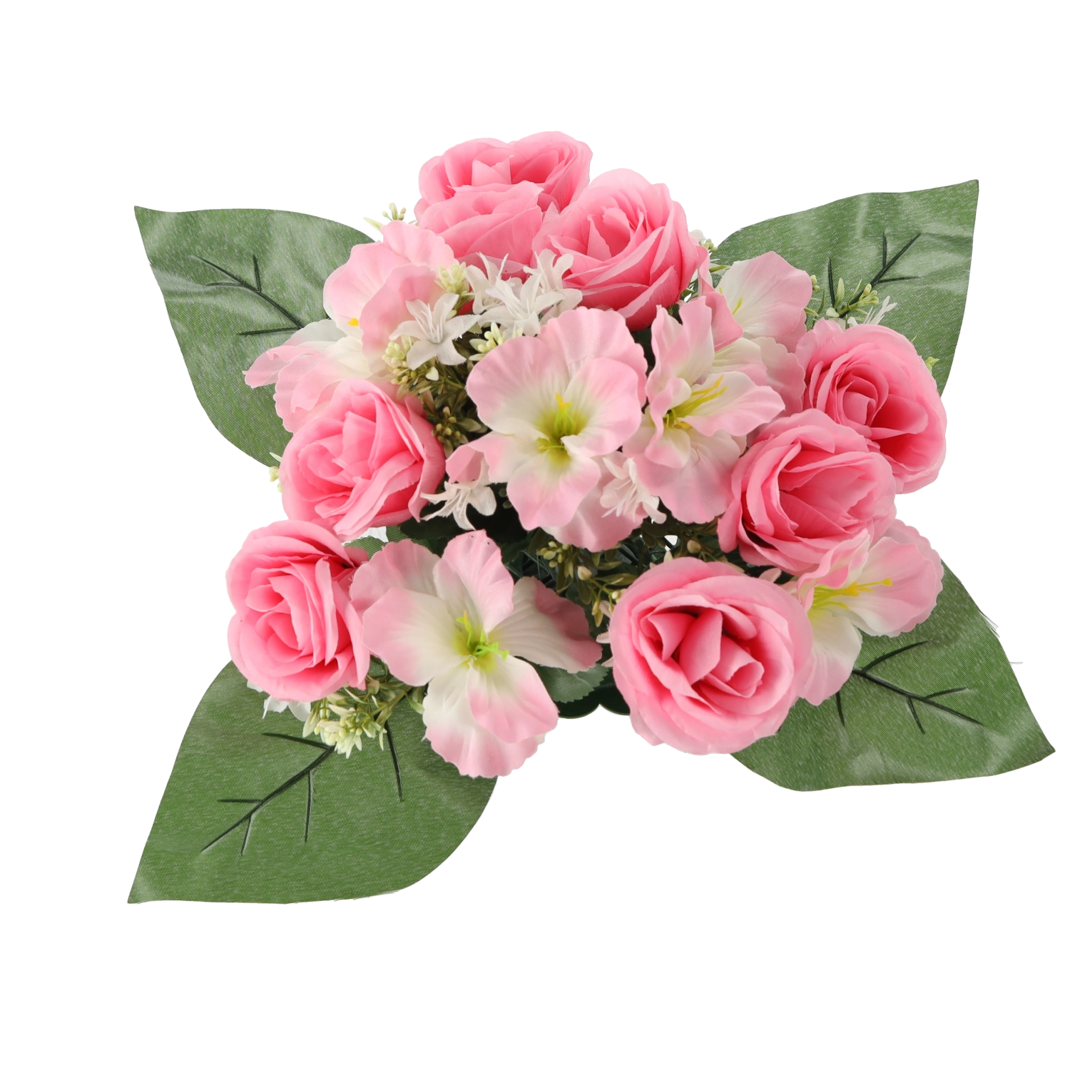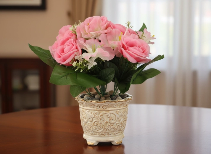 Detailne spracované kvety ruží a ibišteka pôsobia prirodzene a udržia si svieži vzhľad po celý rok – bez polievania a opadávania.