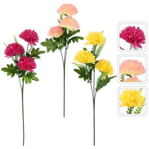 Táto umelá chryzantéma verne napodobňuje živú kvetinu – od detailne tvarovaných lupienkov až po realistické listy. Vďaka odolnému materiálu si udrží farby aj tvar po dlhý čas, a to bez polievania či osobitnej starostlivosti.