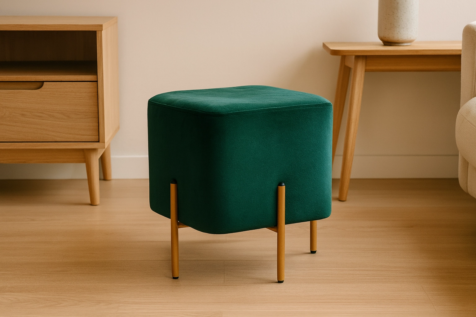 Elegantná štvorcová taburetka s čalúnením z jemného zamatu a stabilnými kovovými nohami v zlatej farbe dodá vášmu interiéru šmrnc aj praktickosť. Ponúka mäkké a pohodlné sedenie, kompaktné rozmery 35 × 35 × 40 cm a univerzálne využitie ako podnožka, extra sedák alebo odkladací stolík. Stabilná konštrukcia a štýlové zlaté detaily sa skvele hodia do obývačky, spálne aj predsiene.