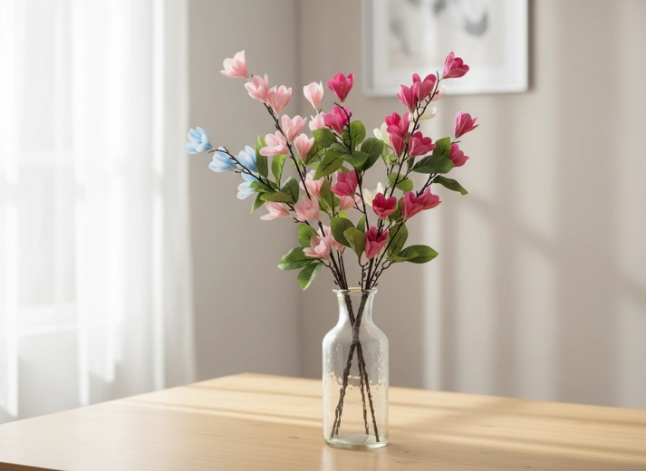 Elegantná umelá vetvička magnólie s výškou 90 cm dodá vášmu interiéru nadčasový šarm. Ponúka realistické kvety, mix obľúbených farieb a flexibilný stonku na jednoduché tvarovanie. Ideálna do váz, dekorácií aj sezónnych aranžmánov – bez údržby a vždy svieža.