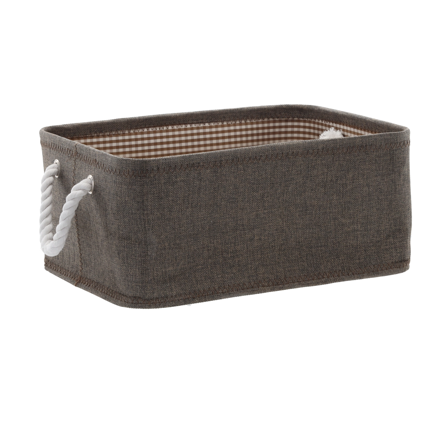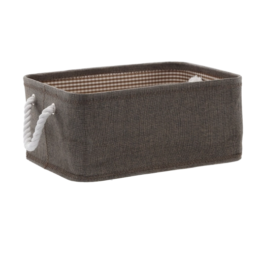 Kôš je vyrobený z odolnej tkaniny pre dlhú životnosť a jednoduchú údržbu. Silné pletené lanové úchyty umožňujú pohodlné prenášanie a vnútorná podšívka s dekorom dodáva elegantný vzhľad. Mäkké boky šetria priestor a umožňujú jednoduché uloženie na police či do skrine.