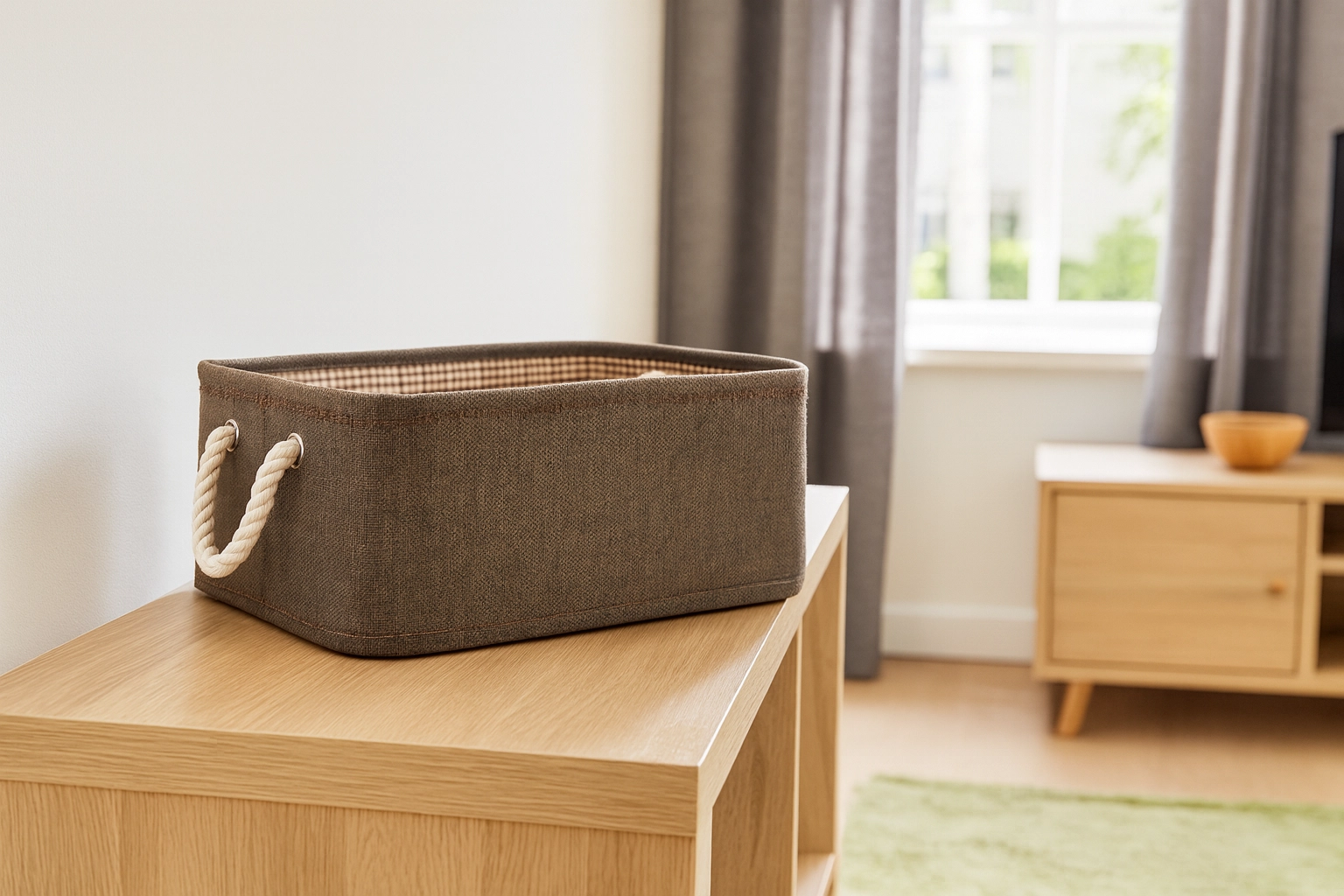 Obdĺžnikový textilný organizér s rozmermi 30 × 40 × 18 cm je ideálny na prehľadné ukladanie oblečenia, hračiek, doplnkov aj drobných domácich potrieb. Vďaka minimalistickému dizajnu a neutrálnemu odtieňu sa ľahko zladiť s klasickým aj moderným interiérom.