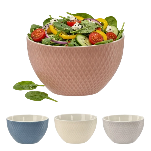 Reliéfny povrch zvyšuje estetiku aj praktickosť – miska sa lepšie drží a nešmýka sa v ruke pri servírovaní polievok, šalátov či dezertov.