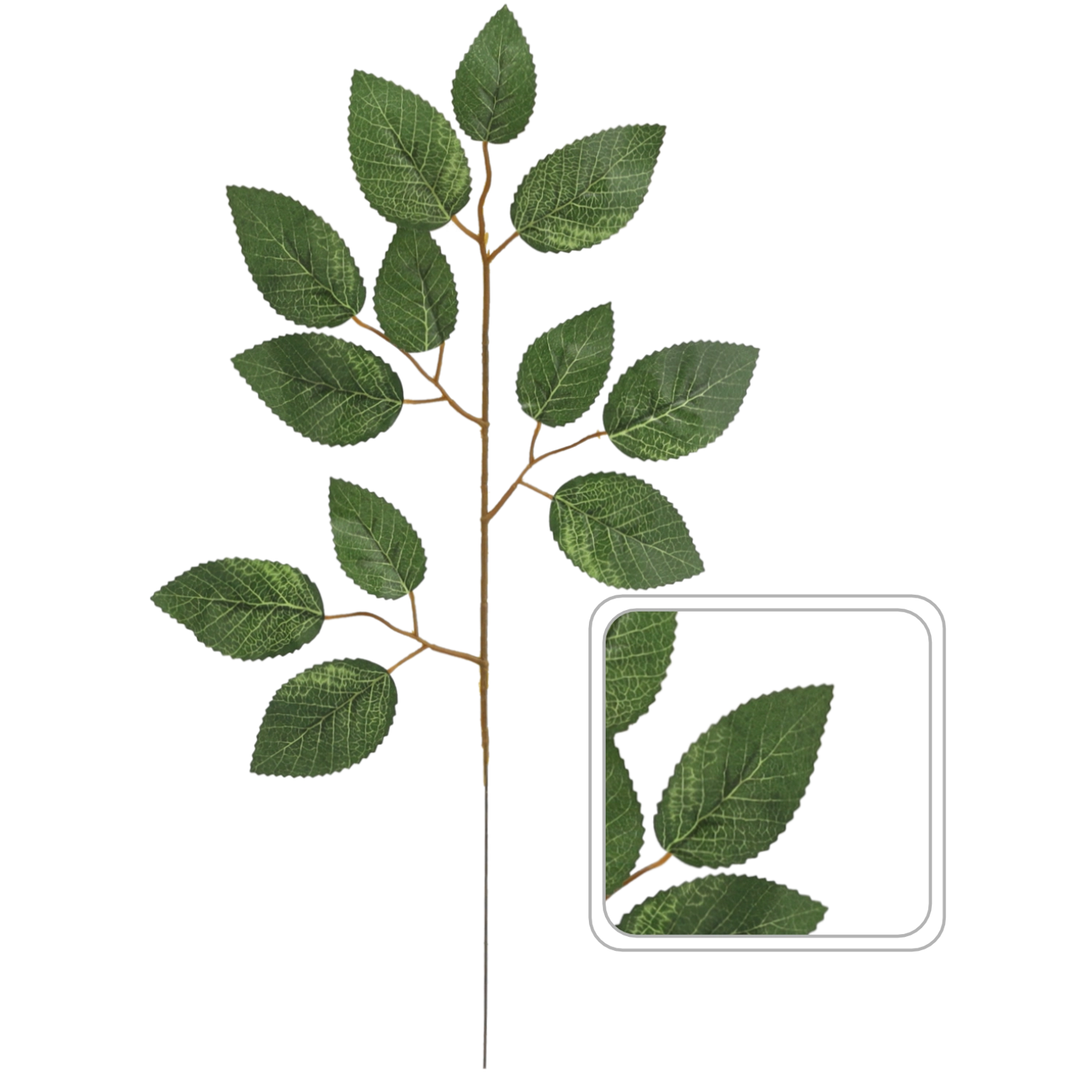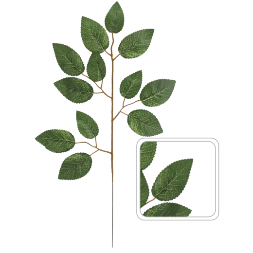 Vytvorte si doma sviežu atmosféru bez starostí. Umelá vetvička s listami ruže vyniká detailným spracovaním, verným odtieňom zelenej a dlhou farebnou stálosťou. Hodí sa na celoročné dekorovanie, či už samostatne vo váze, v girlandách, vencoch alebo ako doplnok väčších kvetinových kompozícií.