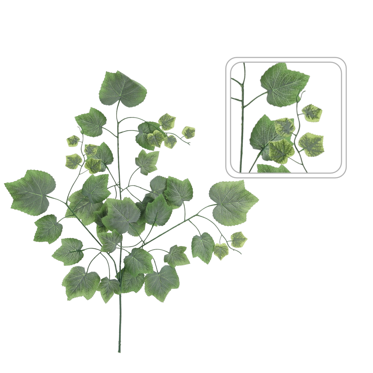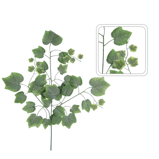 Táto dekoratívna súprava vnesie do každého priestoru prírodný charakter bez nárokov na údržbu. Listy viniča z kvalitného syntetického materiálu verne napodobňujú skutočné rastliny a zachovávajú si živú zelenú farbu. Hlavný stonok z pružného plastu možno ľahko tvarovať, ohýbať a prispôsobiť rôznym aranžmánom – od stolových dekorácií až po závesné girlandy.