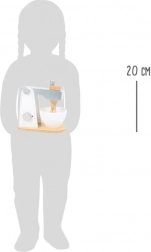 Drevený kuchynský robot small foot poteší malých kuchárov realistickými funkciami a kvalitným spracovaním. Otočné metličky miešajú cesto v plastovej mise a sklopná mixovacia hlava umožňuje pohodlné vkladanie aj vyberanie surovín. Robustný podstavec zaisťuje, že robot pri hre pevne stojí.
