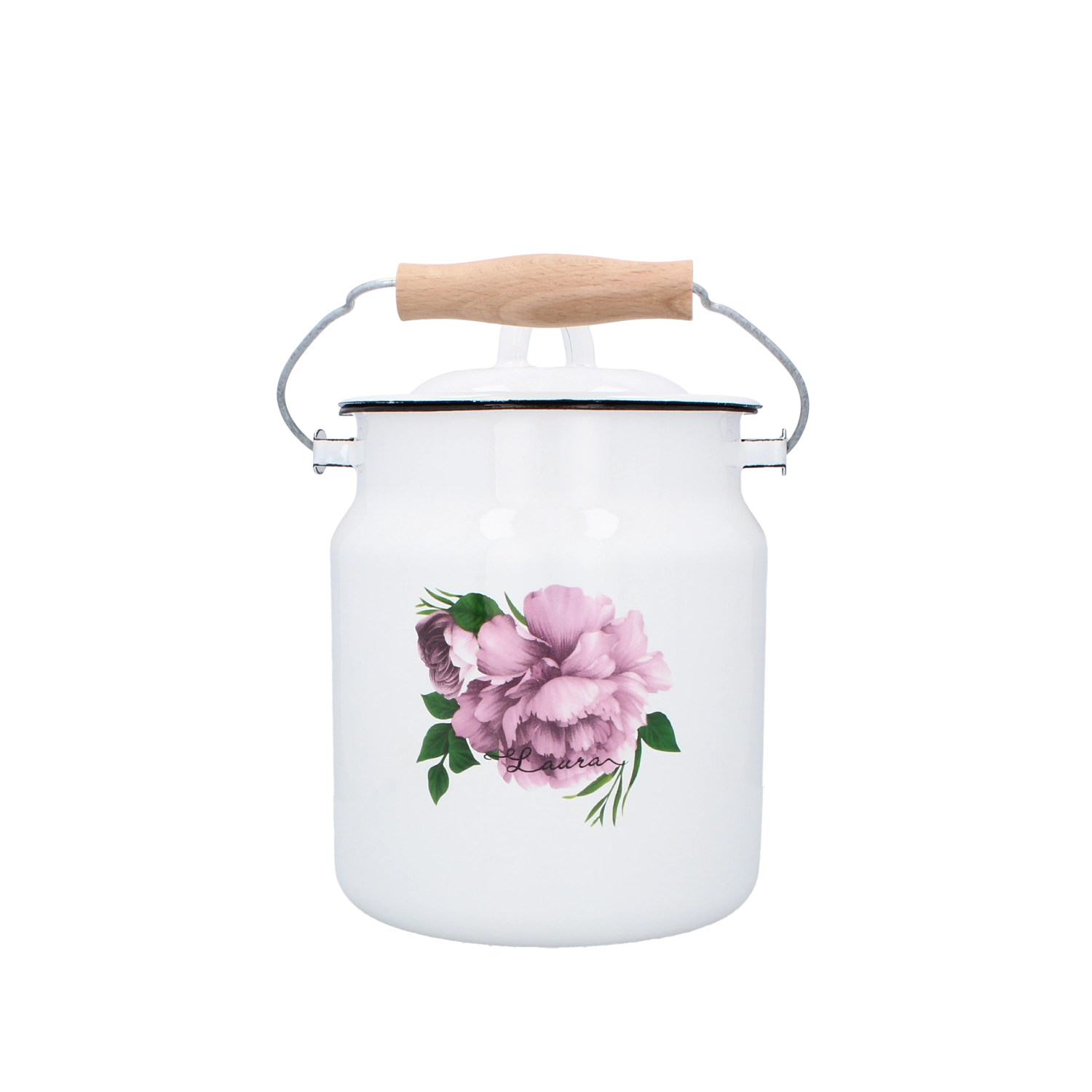 Smaltovaná kanvica na mlieko Laura 3,3 l, biela pivonka
