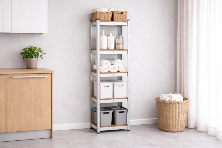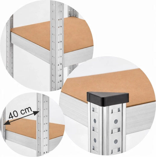 Maximalizujte úložný priestor s praktickým 5-úrovňovým regálom s rozmermi 180 × 40 × 40 cm. Konštrukcia z galvanizovanej (oceľovo zinkovanej) ocele zaisťuje odolnosť proti korózii, zatiaľ čo pevné MDF police spoľahlivo unesú aj ťažšie predmety. Zaoblené hrany zvyšujú bezpečnosť pri každodennom používaní.