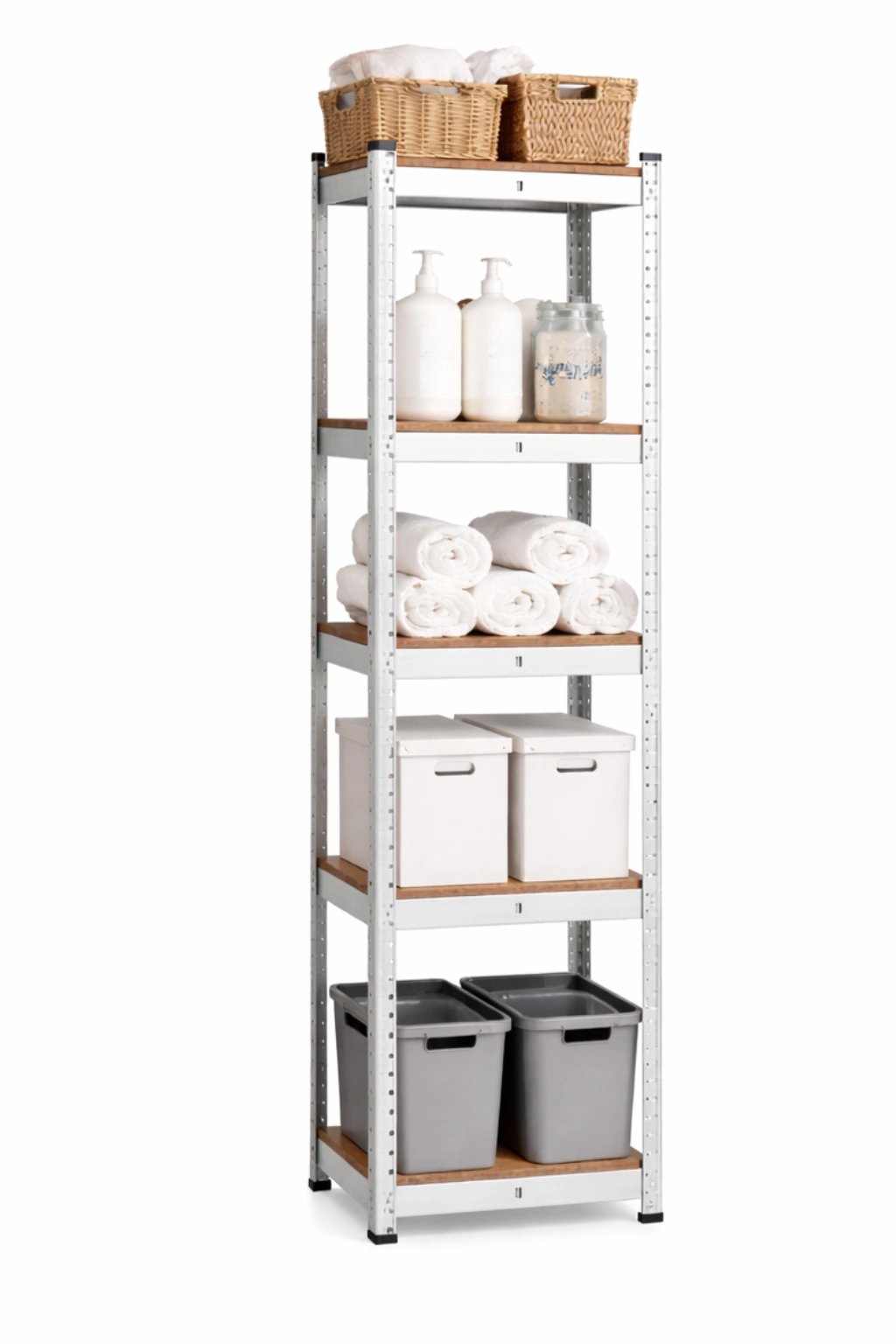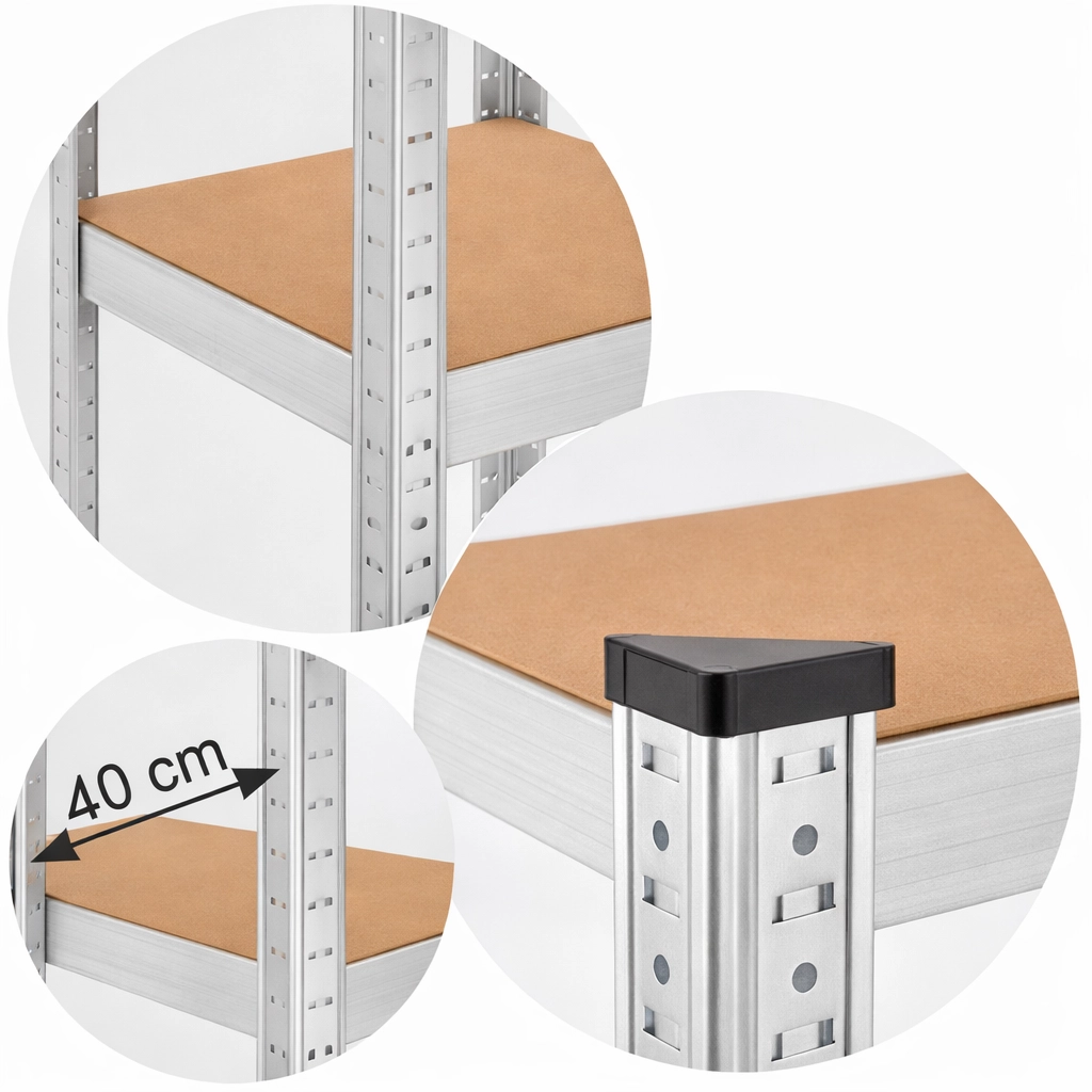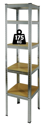 Päťúrovňový kovový regál je ideálny do garáže, pivnice, dielne aj skladu. Vďaka pevnej oceľovej konštrukcii a policám z MDF ponúka vysokú stabilitu a nosnosť až 175 kg na poličku. Ľahko v ňom usporiadate náradie, materiál, zásoby aj dokumenty – a to s rýchlou a jednoduchou montážou.