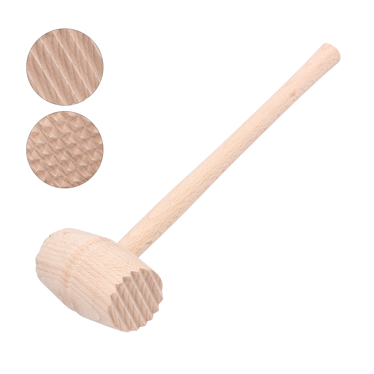 Tento drevený tĺčik na mäso je spoľahlivým pomocníkom na prípravu rezňov, závitkov aj ďalších mäsových pokrmov. Je vyrobený z odolného bukového dreva, ktoré je ošetrené ochranným lakom pre dlhšiu životnosť a jednoduchšie čistenie. Dva nerezové nadstavce s priemerom 4,5 cm umožňujú rovnomerné a rýchle naklepávanie bez poškodenia štruktúry mäsa.