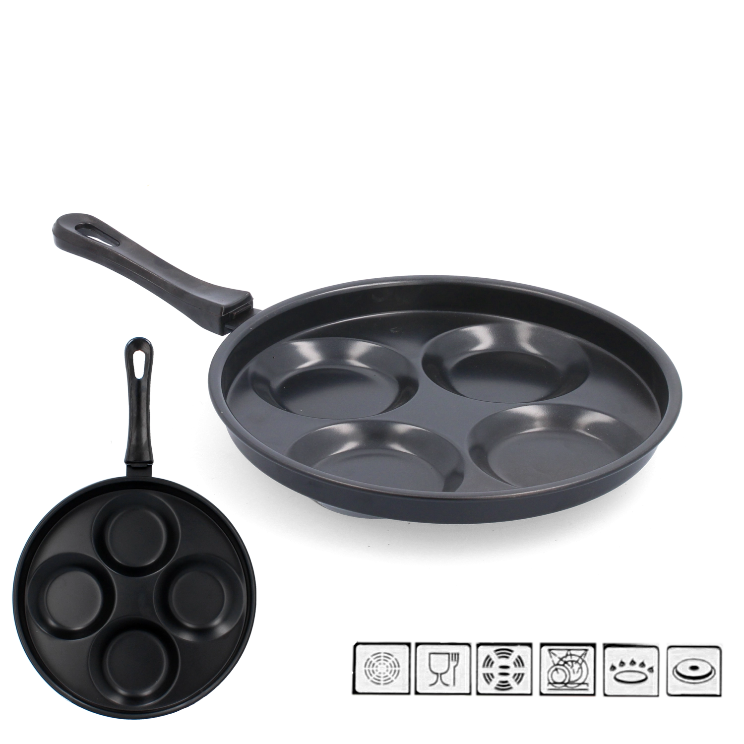 Praktická panvica na vajcia s priemerom 24 cm z odolnej uhlíkovej ocele s nepriľnavou povrchovou úpravou pre jednoduché vyprážanie bez pripaľovania. Ergonomická plastová rukoväť zabezpečuje pohodlné a bezpečné uchopenie, zatiaľ čo vonkajší tepelne odolný povrch zvyšuje odolnosť pri každodennom používaní.