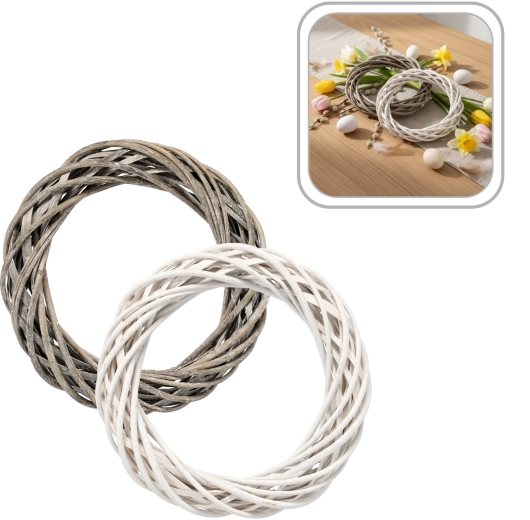 Vďaka ručnej výrobe z kvalitného prírodného prútia má každý kus jedinečnú textúru a autentický vzhľad. Veniec je ľahký, no stabilný, vhodný na vnútorné aj vonkajšie použitie – na vchodové dvere, ako centrálna dekorácia na stôl či nástenný prvok.