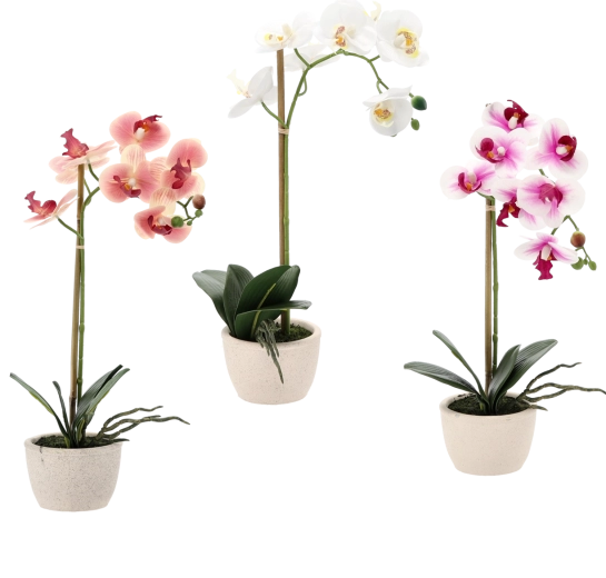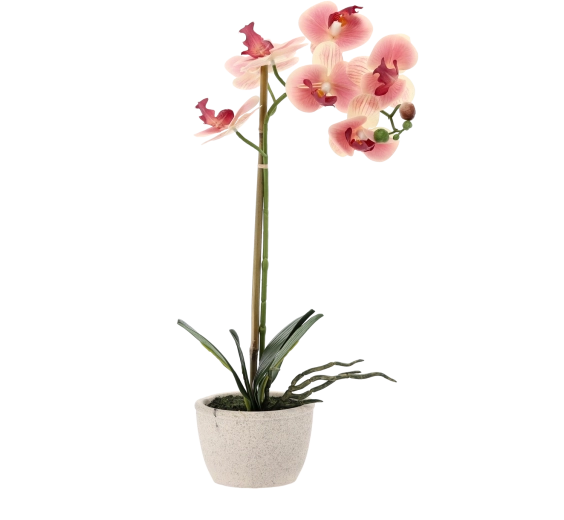 Vneste do svojho domova sviežosť kvetov bez starostí. Táto umelá orchidea verne napodobňuje živú rastlinu – od jemných okvetných lístkov a púčikov až po sýto zelené listy. Vďaka kompaktnej veľkosti je ideálna na parapet, policu, konferenčný stolík či recepciu.