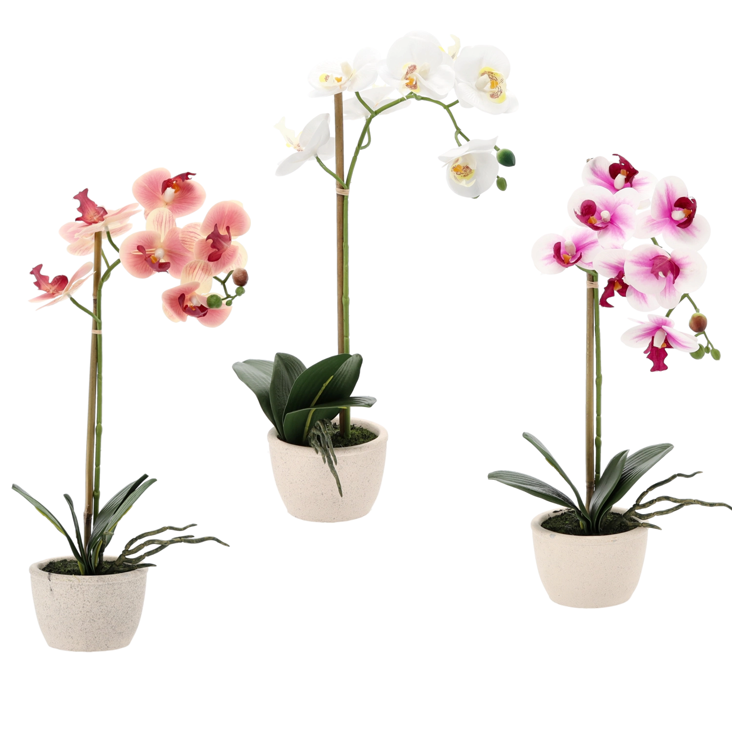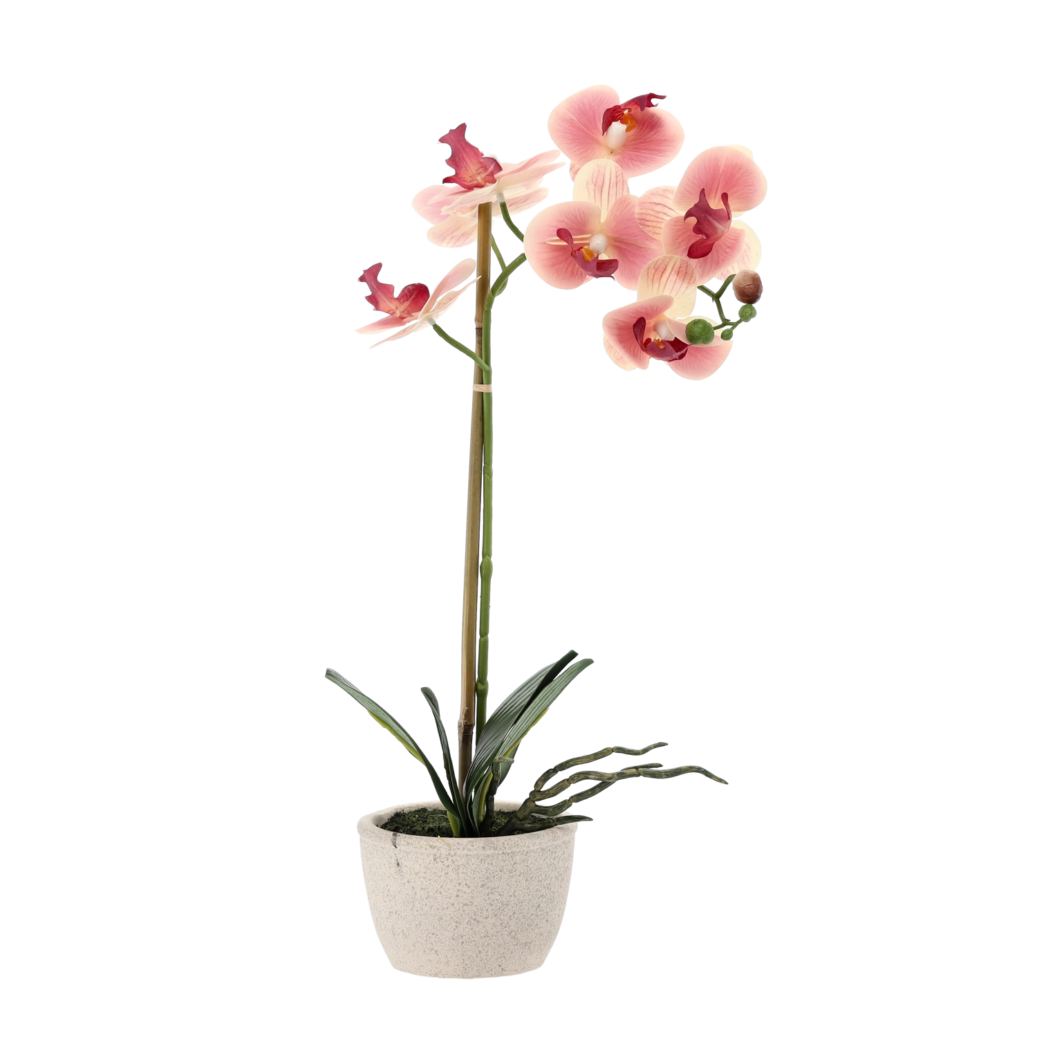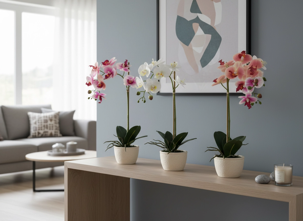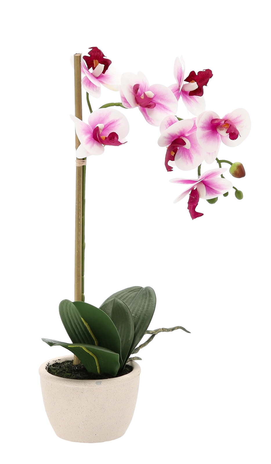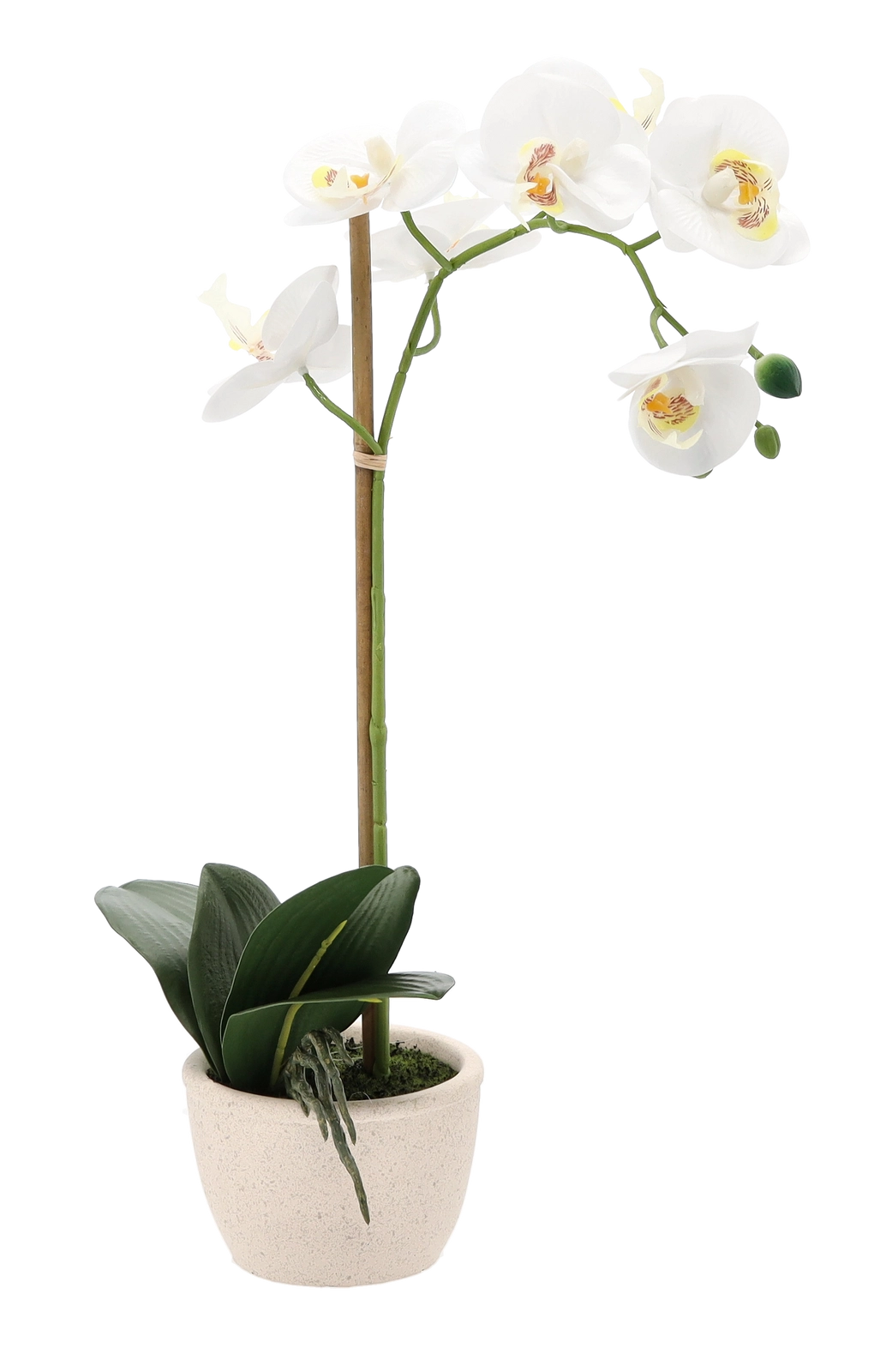 Jemné okvetné lístky, dekoratívne púčiky a sýte listy verne napodobňujú živú orchideu a dodajú interiéru luxusný vzhľad bez námahy.